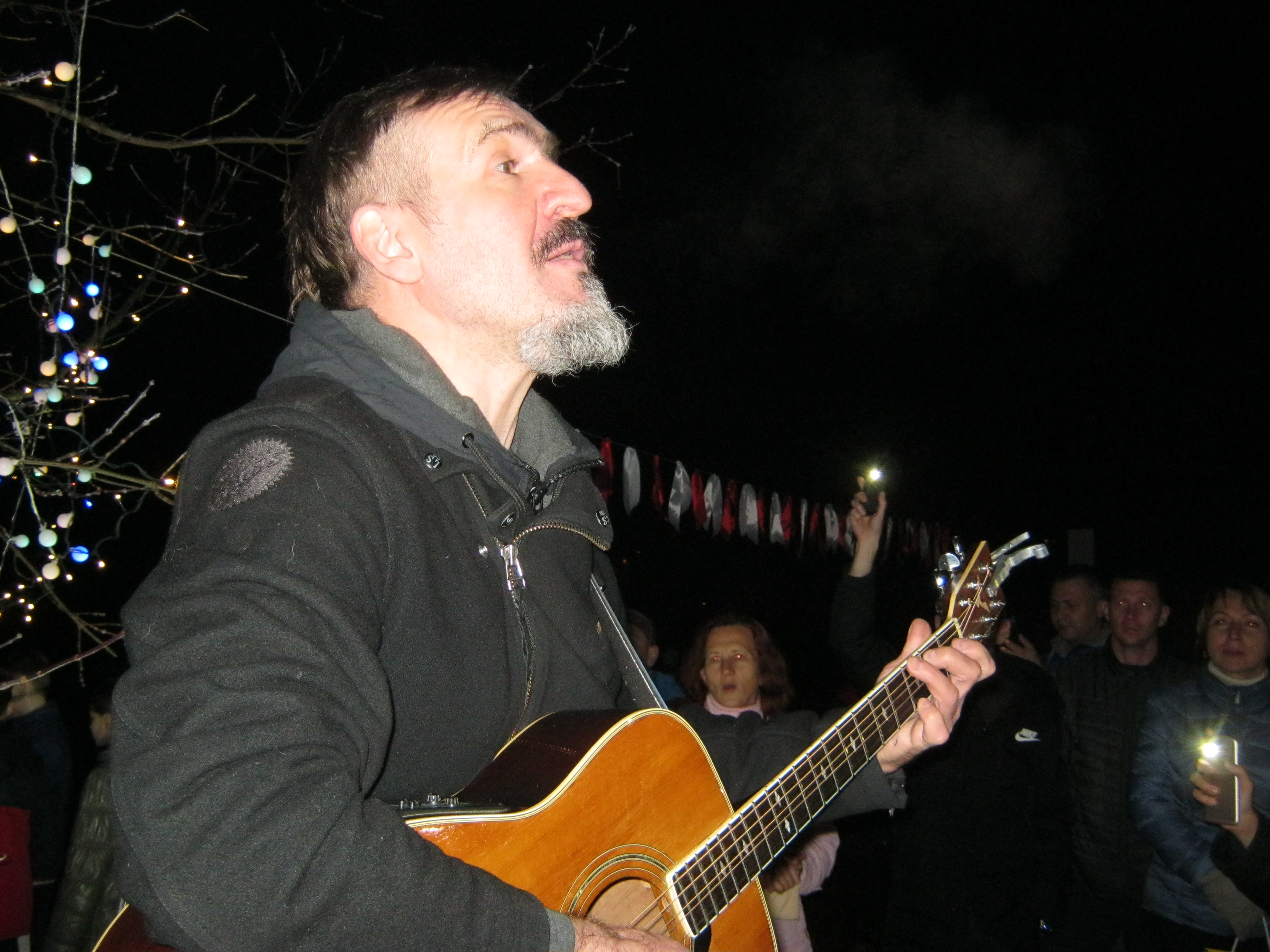 – Вам не пашанцавала. Гэта не юбілейны канцэрт, гэта 71-ы канцэрт. Толькі што, пяць хвілін таму, я ў Зялёным Лузе сыграў сямідзясяты канцэрт. І я пра вас шмат чаго ведаю. Па-першае, я ведаю, што ў Менску 2 мільёны „лялькаводаў”. У кожным двары зараз – вось такое ж самае. Вось я толькі што прыехаў з Зялёнага Луга. На Зубры ўчора было трыста пяцьдзясят чалавек. Там у кожным двары стаяць “льлькаводы” і тузаюць за тайныя нітачкі, каб я прыйшоў і для вас спяваў.