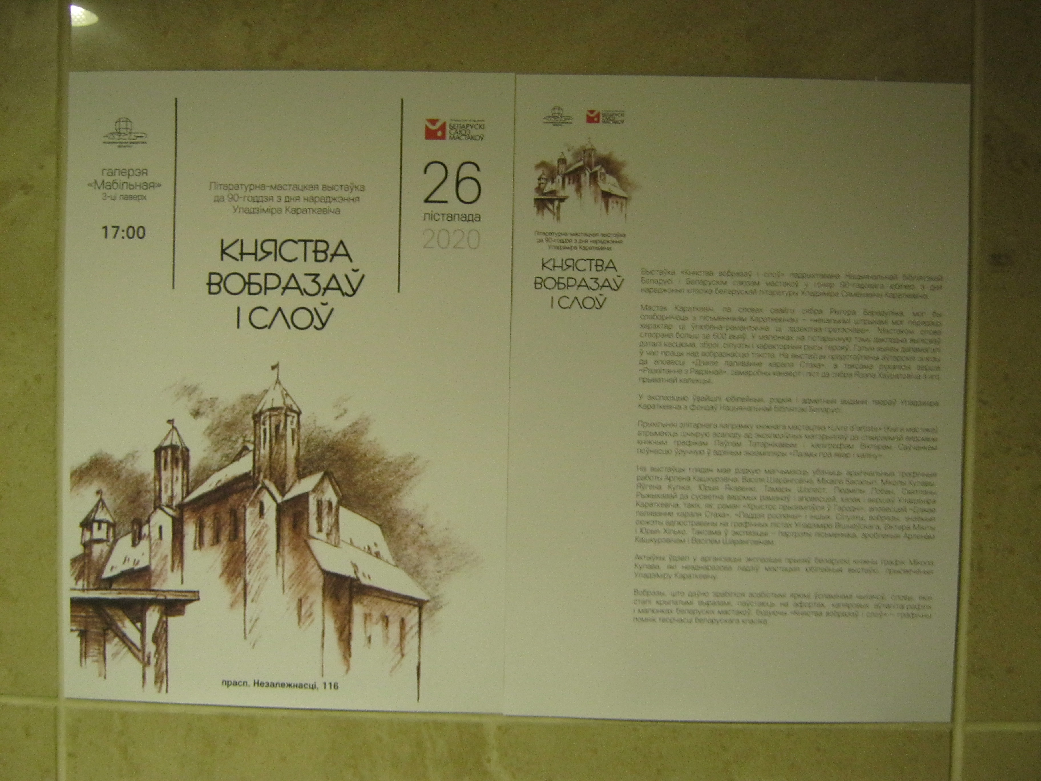 У экспазіцыю ўвайшлі рэдкія кнігі пісьменніка розных гадоў выдання, графічныя малюнкі самога Уладзіміра Караткевіча, а таксама арыгіналы ілюстрацый да ягоных твораў, выкананыя мастакамі розных пакаленняў.
