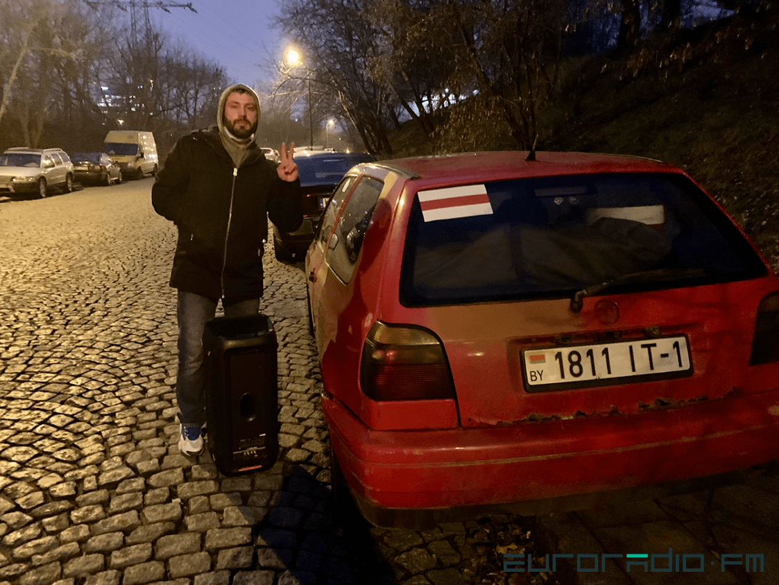 Першы тыдзень ва Украіне я праседзеў у тэлефоне. Вельмі хацелася дадому. Мы пазнаёміліся з музыкам, і я пачаў займацца вулічнай музыкай. Але гэта было не тое, што мне трэба: гэты хлопец траціў шмат грошай на алкаголь. Але я ў Жытоміры пайграў, у Кіеве тры тыдні пайграў, потым падаў дакументы на гуманітарную візу і апынуўся тут. За пару дзён зарабіў сабе на страхоўку і заправіць машыну. І прыехаў сюды.