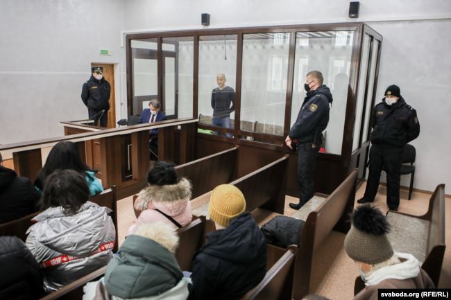Судзьдзя Аляксандар Рыбакоў у судзе Лагойскага раёну прызнаў яго вінаватым у абразе прадстаўніка ўлады і арганізацыі і падрыхтоўцы групай асобаў дзеяньняў, якія груба парушаюць грамадзкі парадак (артыкулы 369 і 342).