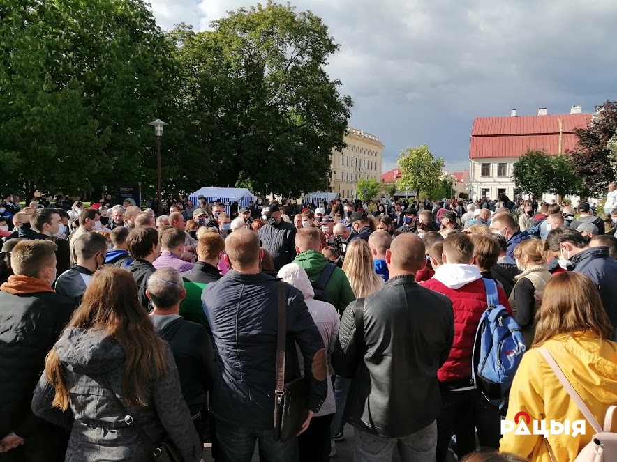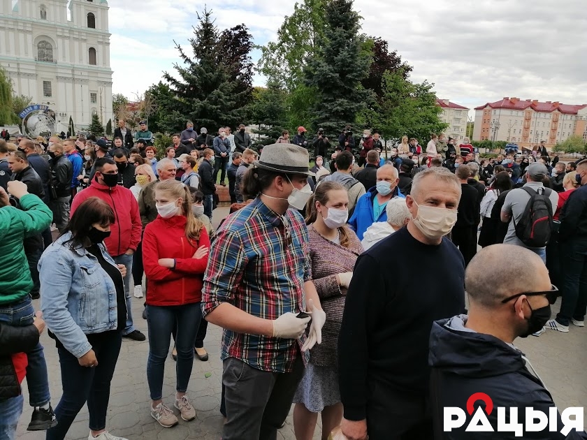 Амаль 500 гарадзенцаў рознага ўзросту выйшлі на Савецкую плошчу, каб падтрымаць кандыдата пратэсту Святлану Ціханоўскую. Гэтым разам у Гародню завітаў і яе муж блогер Сяргей Ціханоўскі.
