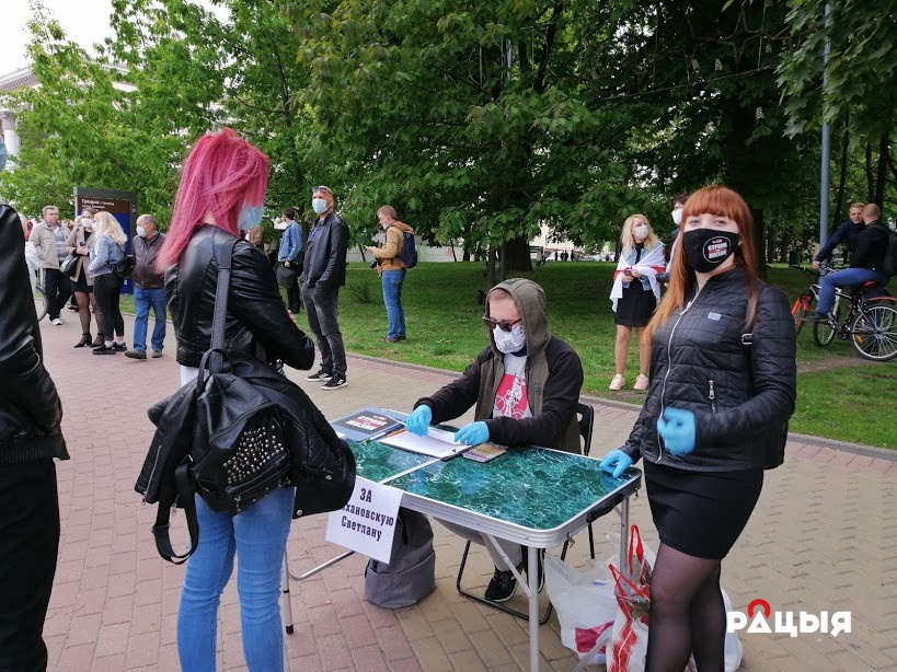 Цягам некалькі гадзін у цэнтры горада ўтварылася 4 чаргі, у якіх стаялі людзі, што падпісваліся за Святлану Ціханоўскую. Для гэтага адмыслова ў горад прыехалі прадстаўнікі ініцыятыўнай групы з іншых гарадоў Беларусі.