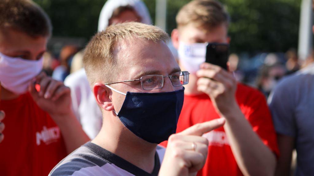 Вакол журналіста Антона Трафімовіч адразу сабралася група моладзі, якія разам гучна сталі задаваць яму пытаньні.
