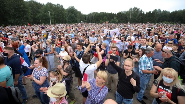 А 18-й гадзіне 30 ліпеня ў менскім парку Дружбы народаў пачаўся мітынг-канцэрт у падтрымку кандыдаткі ў прэзыдэнты Сьвятланы Ціханоўскай.