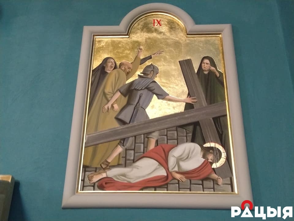 – Ёсць на сцяне знявечаны крыж, які перадалі жыхары Гарбачэва. Яны казалі, што гэты крыж з касцёла гарбачэўскага. Яго адкапалі ў 80-я гады, але ў сувязі з тым, што гэта яшчэ быў час атэізму, то гэты крыж схавалі зноў і толькі потым, калі ў 2005 годзе мы пачалі будаваць гэты касцёл, гэты крыж зноў адкапалі і перадалі нам.