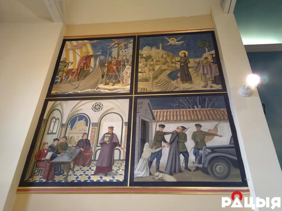 Расонскі касцёл знакаміты сваімі фрэскамі, якія выканаў мастак Уладзімір Кандрусевіч. На гэтых фрэсках акрамя кананічных хрысціянскіх сюжэтаў можна пабачыць выявы хрысціцеля Полацкай зямлі Торвальда Вандроўніка, Святую Еўфрасінню Полацкую і асветніка, беларускага першадрукара Францішка Скарыну.