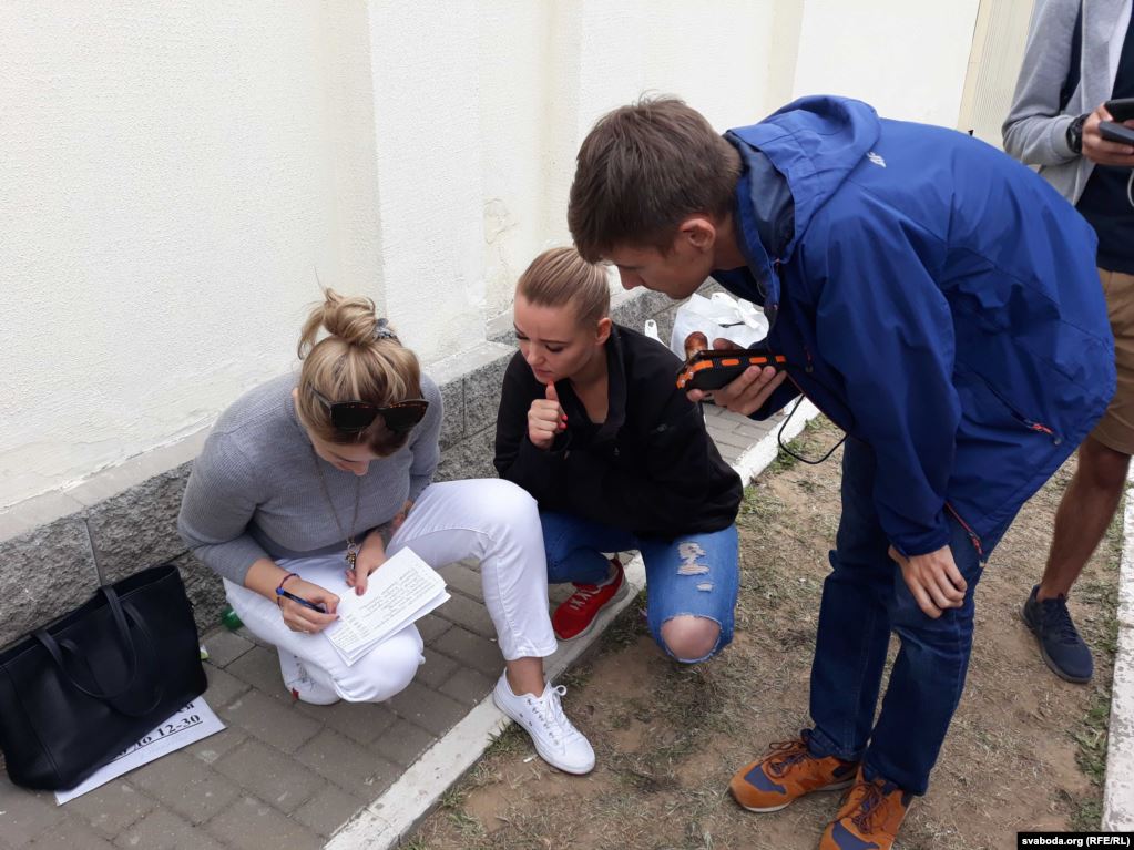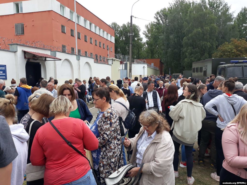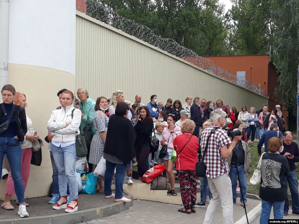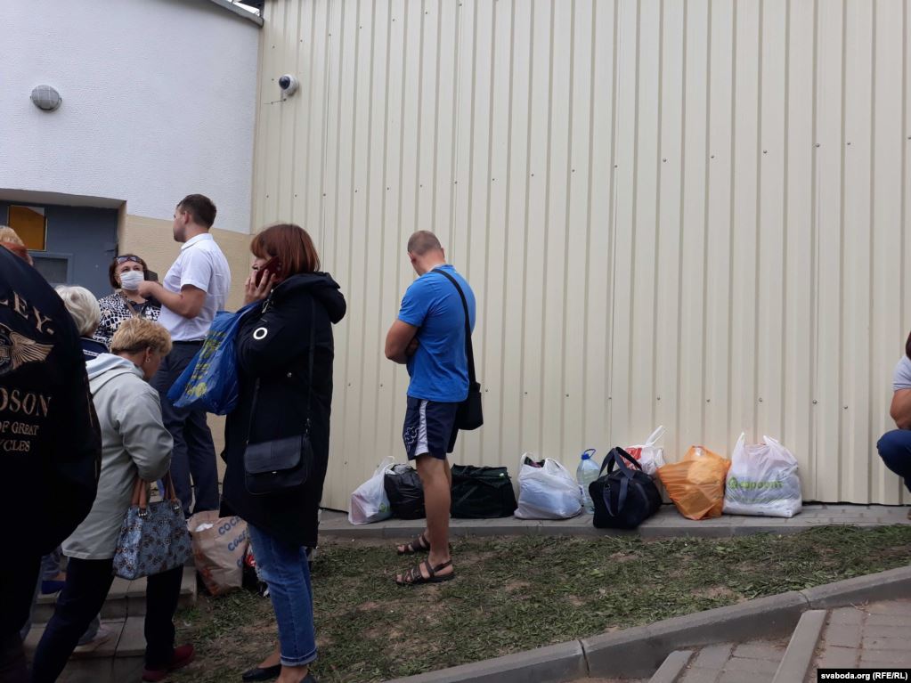 вялікія чэргі сваякоў затрыманых падчас пратэстаў пасьля выбараў 9