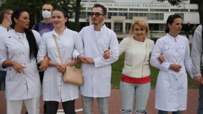 Больш за 200 мэдычных супрацоўнікаў выйшлі сёньня на акцыю «Мэдыкі з народам» у Менску.