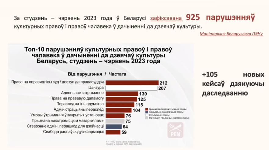 Беларускі ПЭН-цэнтр зладзіў анлайн-прэзентацыю вынікаў чарговага даследавання сферы культуры Беларусі за 2022-2023 гады.