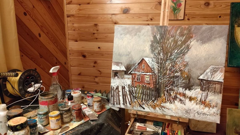 - Тут такое вельмі добрае і спакойнае месца. Кожны раз можна назіраць, як пачынаецца новы дзень і сканчваецца, і ізноў пачынаецца разам з надвор’ем, якое мяняецца кожную хвіліну. Мы ўвесь час працуем, назіраем за асяроддзем, як яно мяняецца. Да нас на панадворак нават зубры прыходзілі. Так што пленэр вельмі файны, - кажа Таццяна Козік.