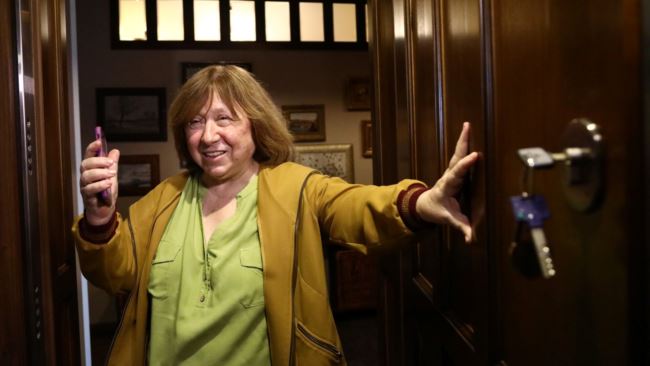 Нобэлеўская ляўрэатка Сьвятлана Алексіевіч папрасіла журналістаў прыехаць да яе дому, бо ад раніцы ёй тэлефануюць і звоняць у дзьверы незнаёмыя людзі.