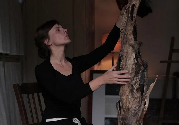 Я адшукала высахлую расліну ў антычным запаведніку Vendicari на беразе мора, закансерваваную марской соллю. І тады зразумела, што з гэтага хачу рабіць скульптуры, а пасля, калі форма пачала паўставаць, асэнсавала, што сам ручны працэс дае мне новыя магчымасці. У Італіі так шмат вольнай прасторы, што сама краіна падштурхоўвае займацца скульптурай. Скульптурай і нейкімі тэатральнымі штукамі. Тут шмат закінутых антычных месцаў, якія натхняюць на стварэнне нечага маштабнага.
