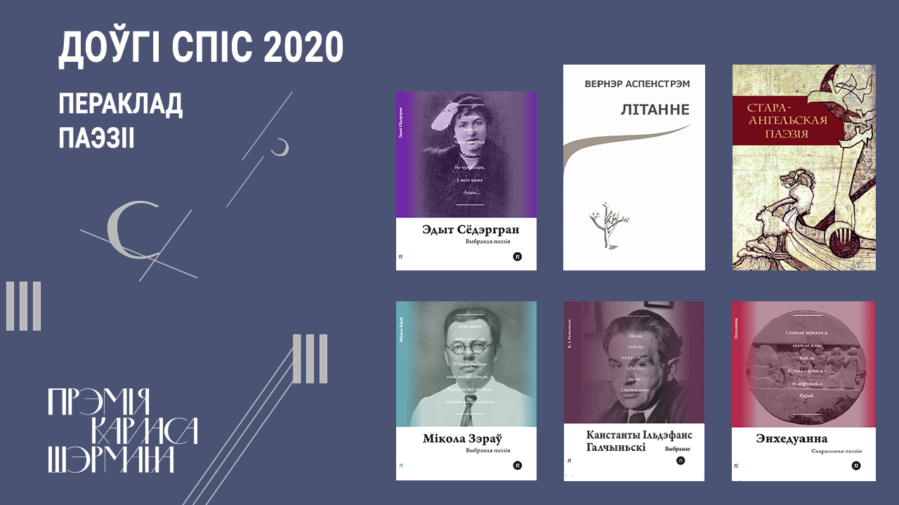 *Творы перакладчыка Лявона Баршчэўскага ў зборніку перакладаў Энхедуаны не ўдзельнічаюць у конкурсе, таму што Лявон Баршчэўскі з’яўляецца сябрам журы (што дазваляюць пункты 2.2.1 і 6.5 Статута прэміі 2020).