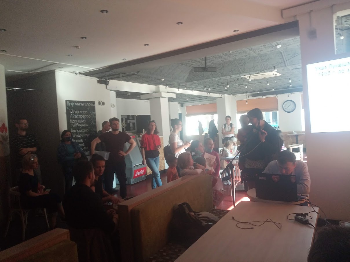 Геральдыст Аляксей Шаланда выступіў з адмысловай дваровай лекцыяй аб нацыянальных сімвалах краіны, якія прапаганда рэжыму прылічвае ад фашыстоўскіх знакаў. Падобныя сустрэчы ладзяцца ў розных раёнах Менску, дзе збіраюцца суседзі пра раёне і слухаюць лектараў ды музыкаў штовечар.