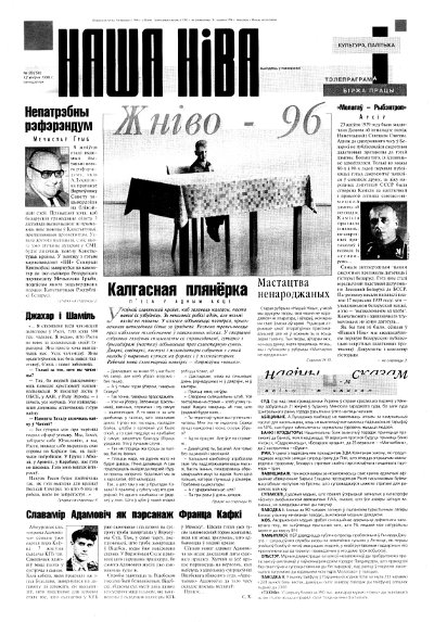Газэта «Наша Ніва» была ўтвораная ў 1906 годзе, і спачатку фактычна была органам Беларускае Сацыялістычнае грамады. У 1991 годзе «Наша Ніва» была адроджаная ў Вільні, галоўным рэдактарам стаў Сяргей Дубавец. Адроджаная газэта зноў стала галоўным выданьнем нацыянальнай інтэлігенцыі, побач з навінамі публікуючы літаратурныя творы, эсэ. У 1996 годзе было прынятае рашэньне пра перанясеньне рэдакцыі ў Менск і трансфармацыі «Нашай Нівы» з выд... Болей »