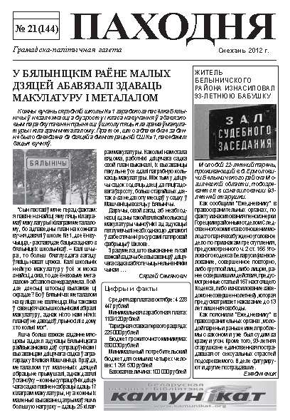У БЯЛЫНІЦКІМ РАЁНЕ МАЛЫХ ДЗЯЦЕЙ АБАВЯЗАЛІ ЗДАВАЦЬ МАКУЛАТУРУ І МЕТАЛАЛОМ Кожны вучань сярэдняй школы № 1 гарадскога пасёлка Бялы-нічы у незалежнасці ад узросту і класа наеучання у абавязко-вым парадку павінен прынесці у школу пяць кілаграмау макулатуры і кілаграм металалому. Пра тое, што адпаведнае задан-не было даведзена да дзяцей адміністрацыяй СШ № 1, паведамілі бацькі вучняу. Болей »