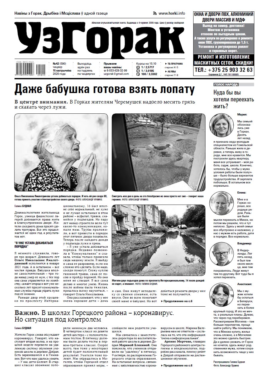 Абласная газета "УзГорак" выходзіць і прадаецца ў Горацкім, Дрыбінскім і Мсціслаўскім раёнах па чацвяргах. Наклад – 2100 асобнікаў на тыдзень. Актуальныя для мясцовых жыхароў тэмы, штотыднёвыя апытанні гараджан, фотарэпартажы, праграма любімых тэлеканалаў, сканворды, прыватныя аб'явы, астрапрагноз і віншаванні. Болей »