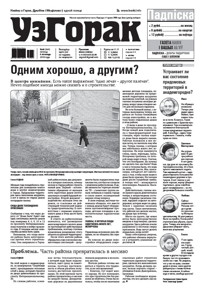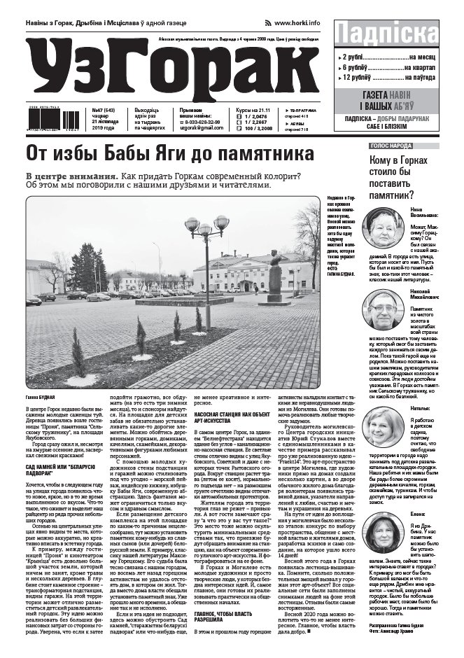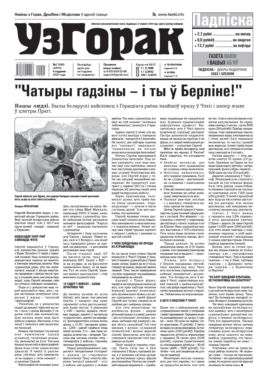 Абласная газета "УзГорак" выходзіць і прадаецца ў Горацкім, Дрыбінскім і Мсціслаўскім раёнах па чацвяргах. Наклад – 2100 асобнікаў на тыдзень. Актуальныя для мясцовых жыхароў тэмы, штотыднёвыя апытанні гараджан, фотарэпартажы, праграма любімых тэлеканалаў, сканворды, прыватныя аб'явы, астрапрагноз і віншаванні. Болей »