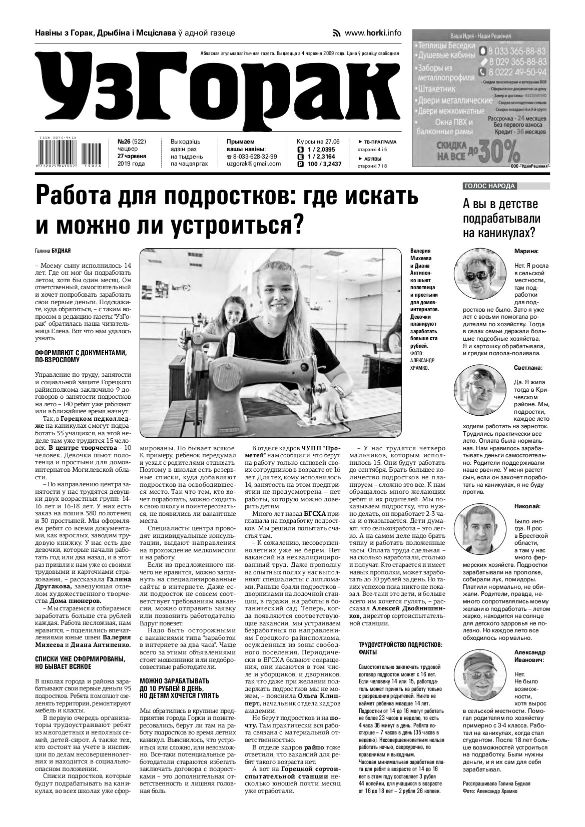 Абласная газета "УзГорак" выходзіць і прадаецца ў Горацкім, Дрыбінскім і Мсціслаўскім раёнах па чацвяргах. Наклад – 2100 асобнікаў на тыдзень. Актуальныя для мясцовых жыхароў тэмы, штотыднёвыя апытанні гараджан, фотарэпартажы, праграма любімых тэлеканалаў, сканворды, прыватныя аб'явы, астрапрагноз і віншаванні. Болей »