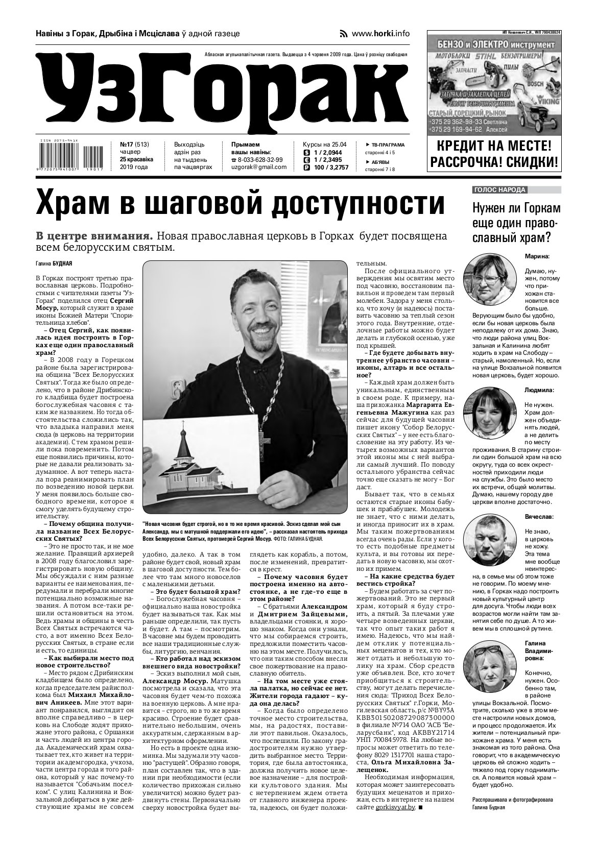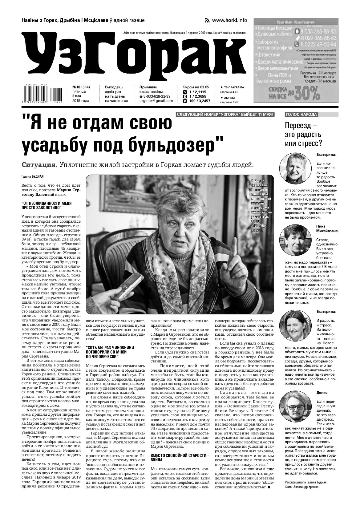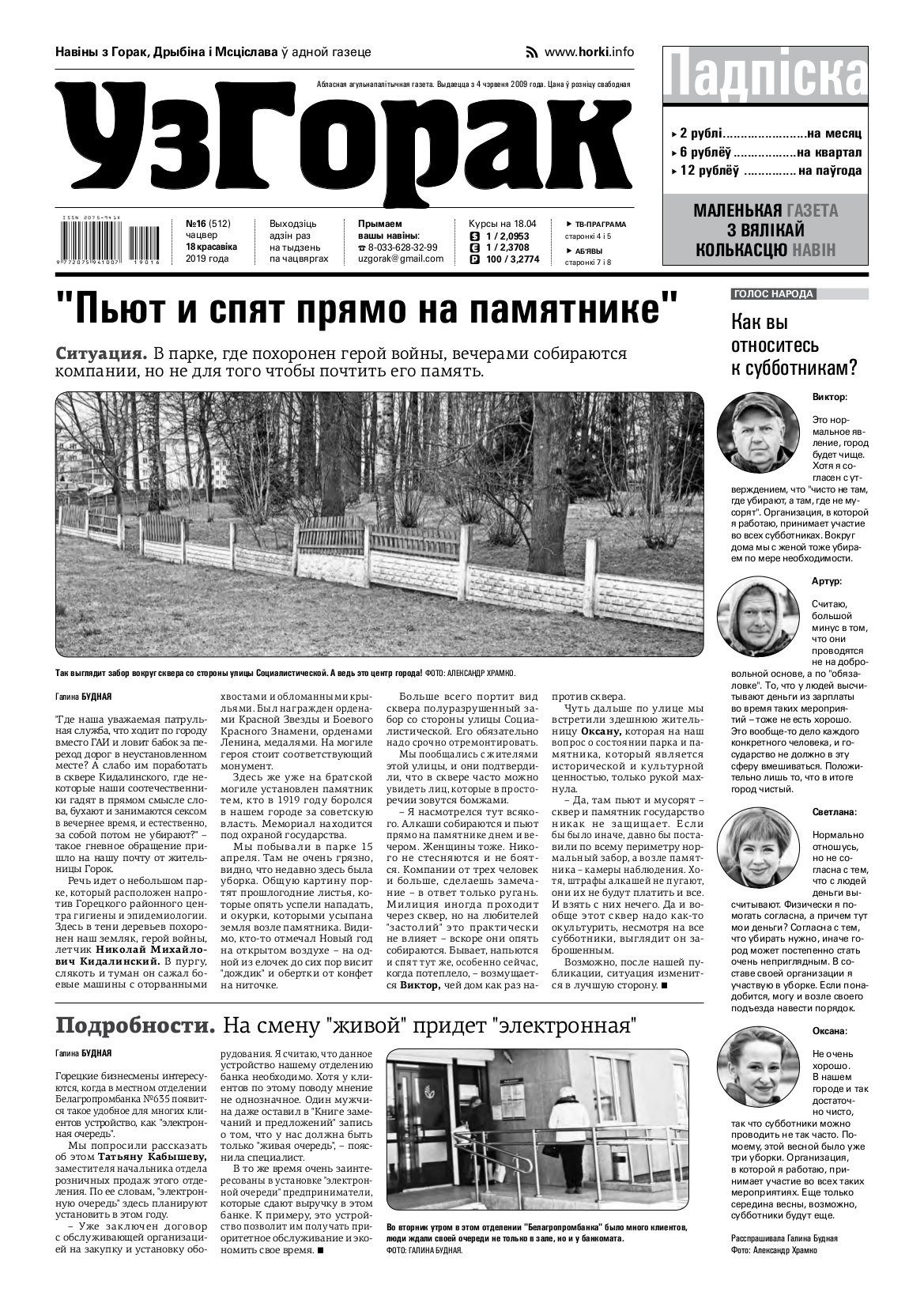 Абласная газета "УзГорак" выходзіць і прадаецца ў Горацкім, Дрыбінскім і Мсціслаўскім раёнах па чацвяргах. Наклад – 2100 асобнікаў на тыдзень. Актуальныя для мясцовых жыхароў тэмы, штотыднёвыя апытанні гараджан, фотарэпартажы, праграма любімых тэлеканалаў, сканворды, прыватныя аб'явы, астрапрагноз і віншаванні. Болей »