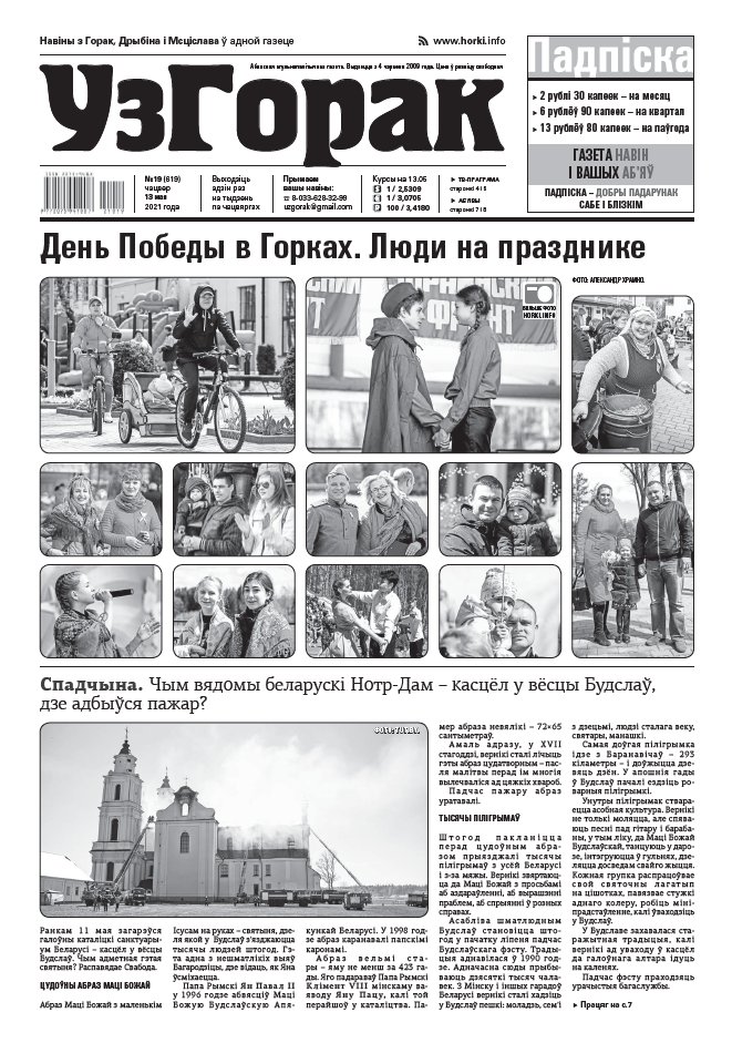Абласная газета "УзГорак" выходзіць і прадаецца ў Горацкім, Дрыбінскім і Мсціслаўскім раёнах па чацвяргах. Наклад – 2100 асобнікаў на тыдзень. Актуальныя для мясцовых жыхароў тэмы, штотыднёвыя апытанні гараджан, фотарэпартажы, праграма любімых тэлеканалаў, сканворды, прыватныя аб'явы, астрапрагноз і віншаванні. Болей »