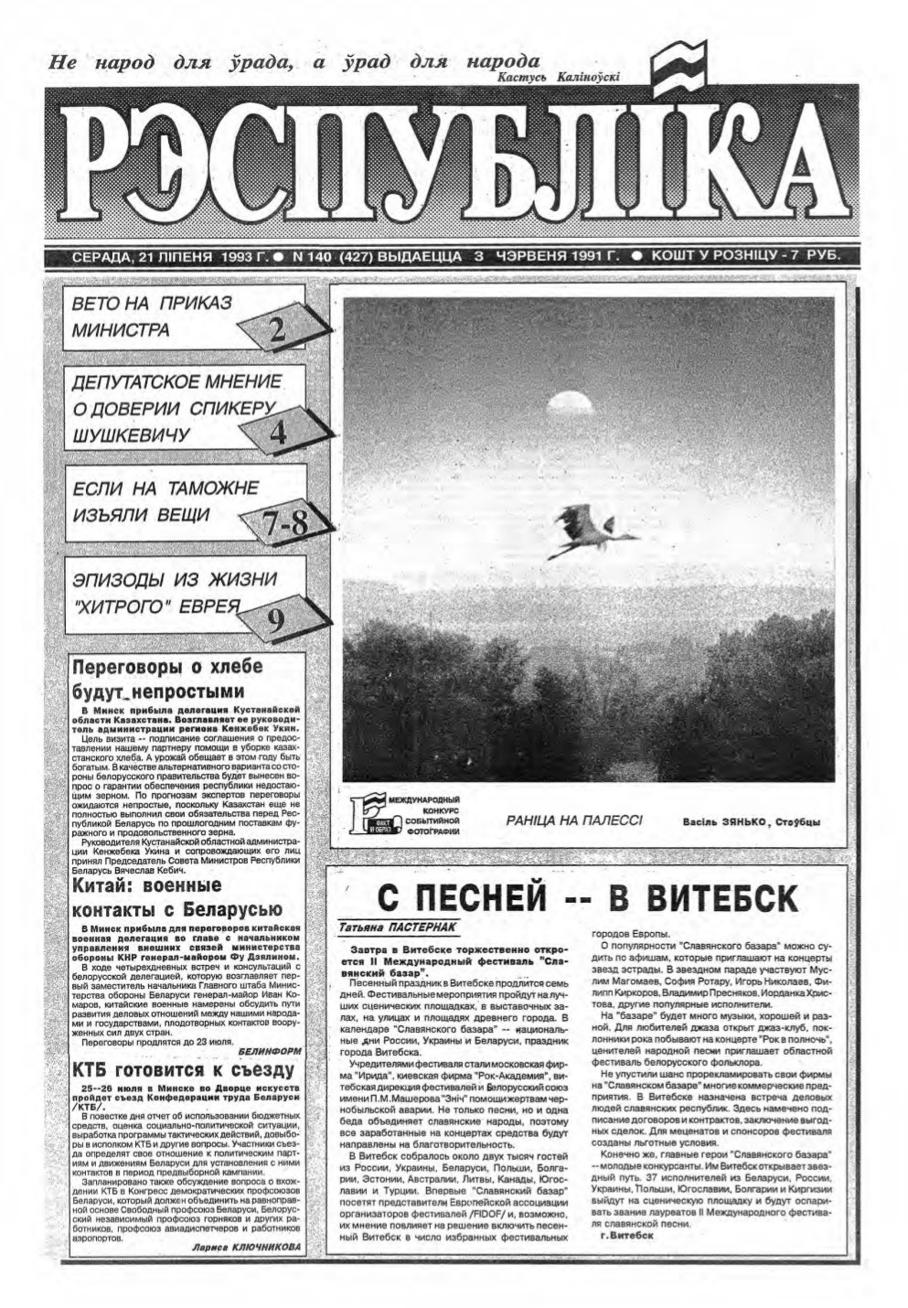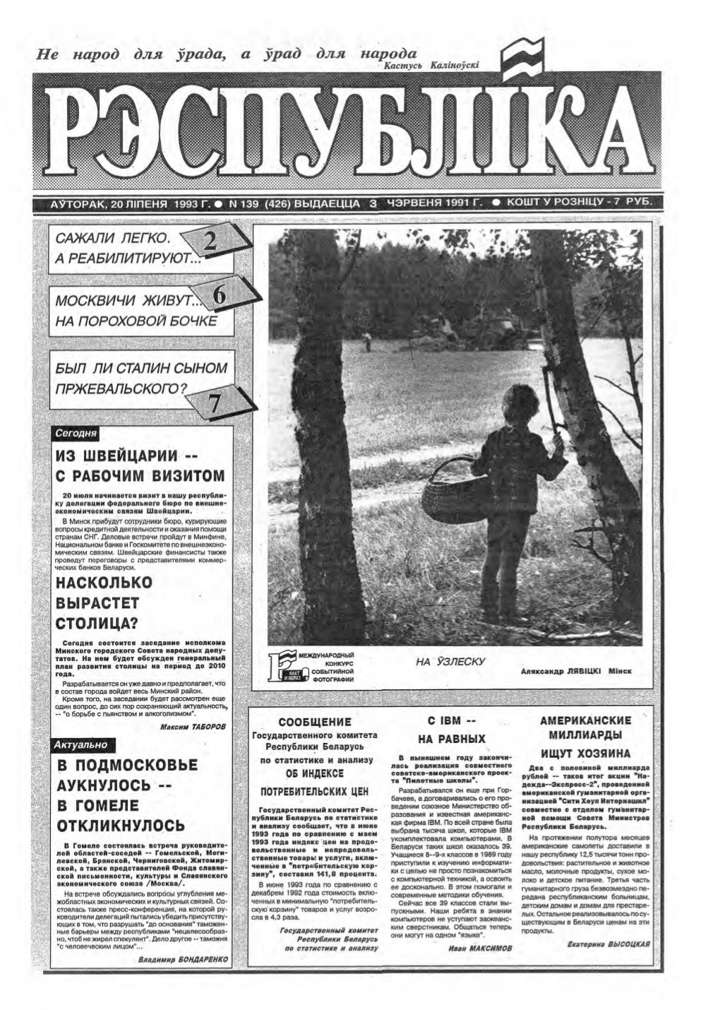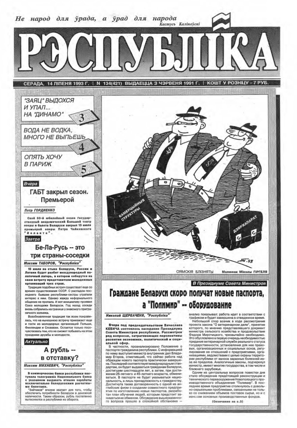 «Рэспубліка» — газета для тых, хто самастойна прымае рашэнні. Заснавальнік - Савет Міністраў Рэспублікі Беларусь. Выдаецца з чэрвеня 1991. Газета выходзіць 250 разоў у год. Аўтары апублікаваных матэрыялаў нясуць адказнасць за падбор і дакладнасць фактаў, іх меркаванні неабавязкова адлюстроўваюць пункт гледжання рэдакцыі. Рукапісы, фотаздымкі і малюнкі не рэцэнзуюцца I не вяртаюцца. Болей »