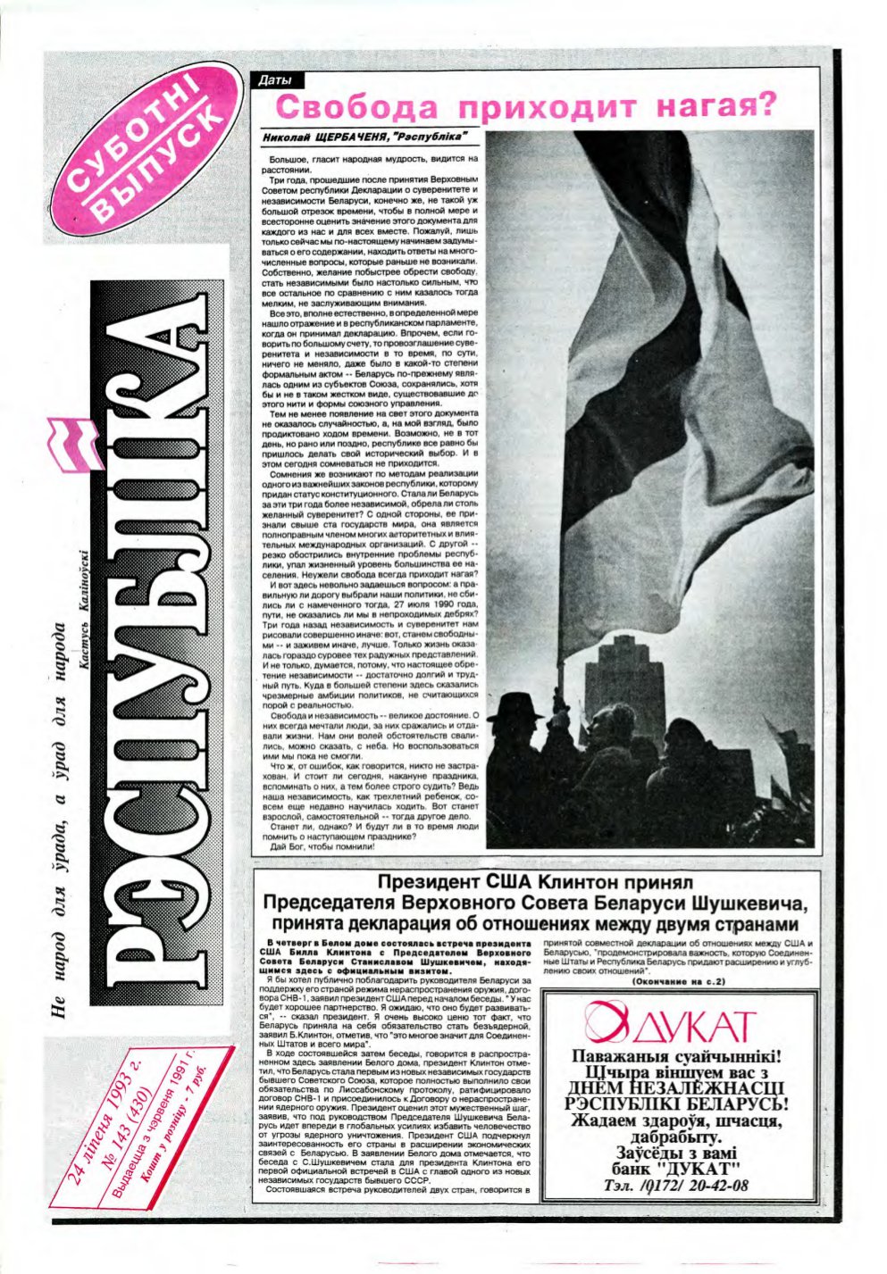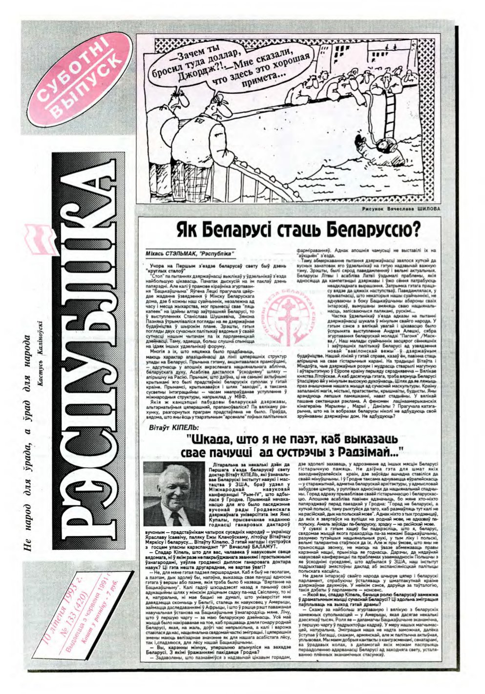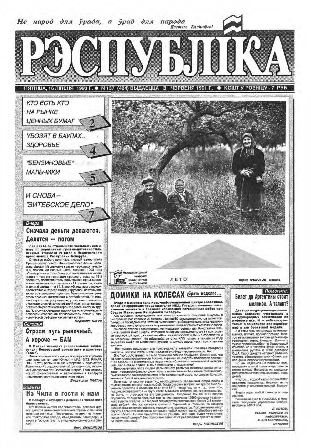 «Рэспубліка» — газета для тых, хто самастойна прымае рашэнні. Заснавальнік - Савет Міністраў Рэспублікі Беларусь. Выдаецца з чэрвеня 1991. Газета выходзіць 250 разоў у год. Аўтары апублікаваных матэрыялаў нясуць адказнасць за падбор і дакладнасць фактаў, іх меркаванні неабавязкова адлюстроўваюць пункт гледжання рэдакцыі. Рукапісы, фотаздымкі і малюнкі не рэцэнзуюцца I не вяртаюцца. Болей »