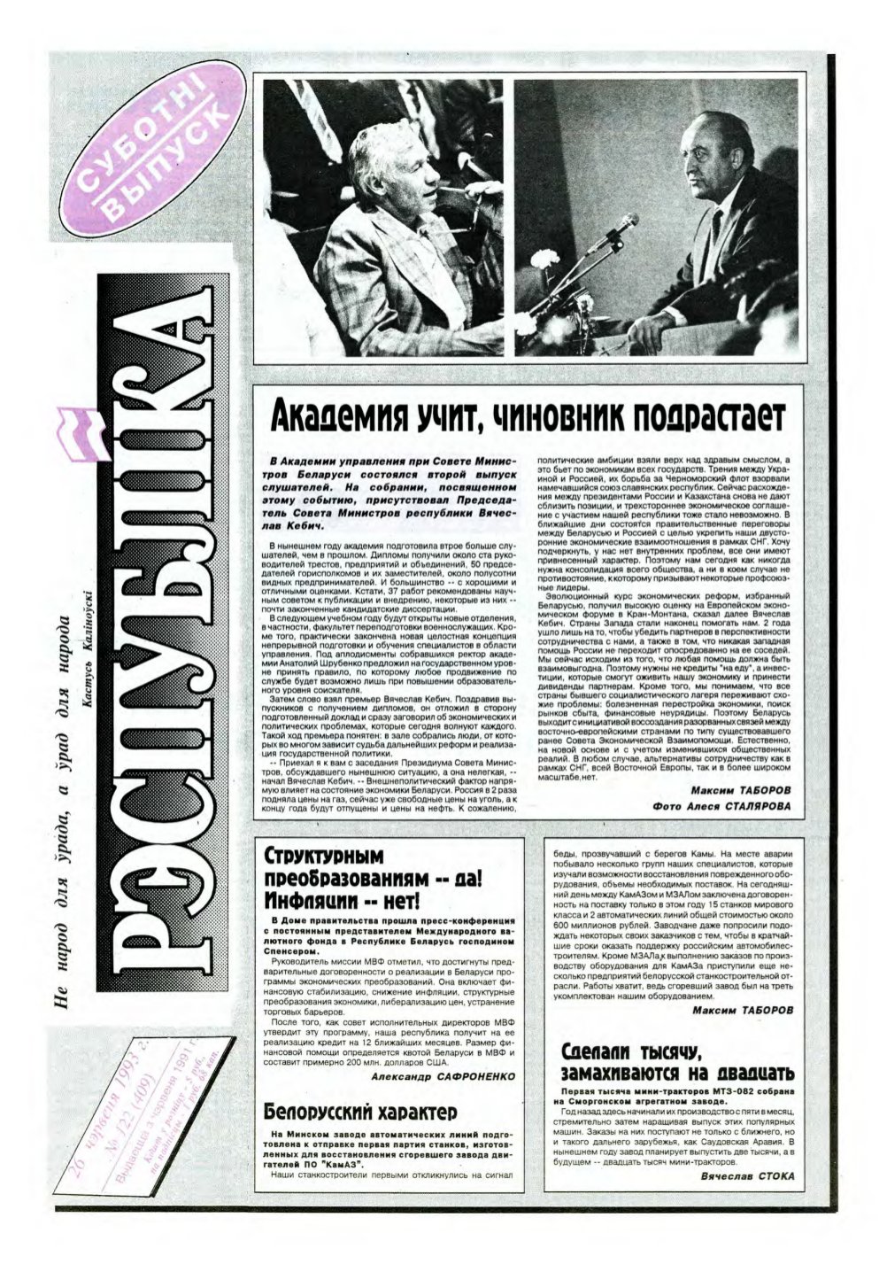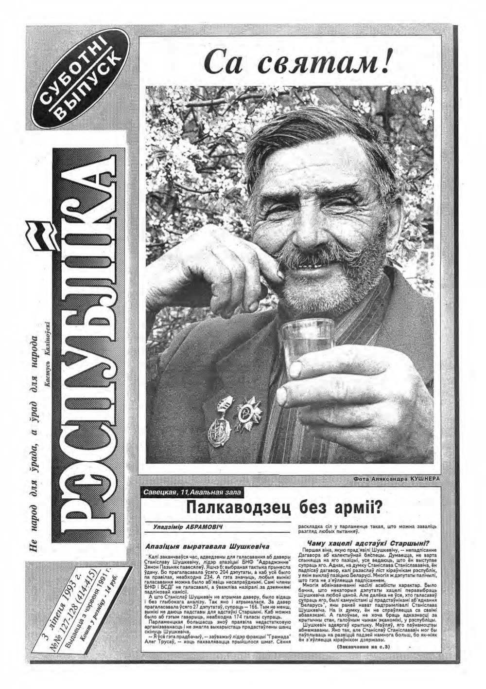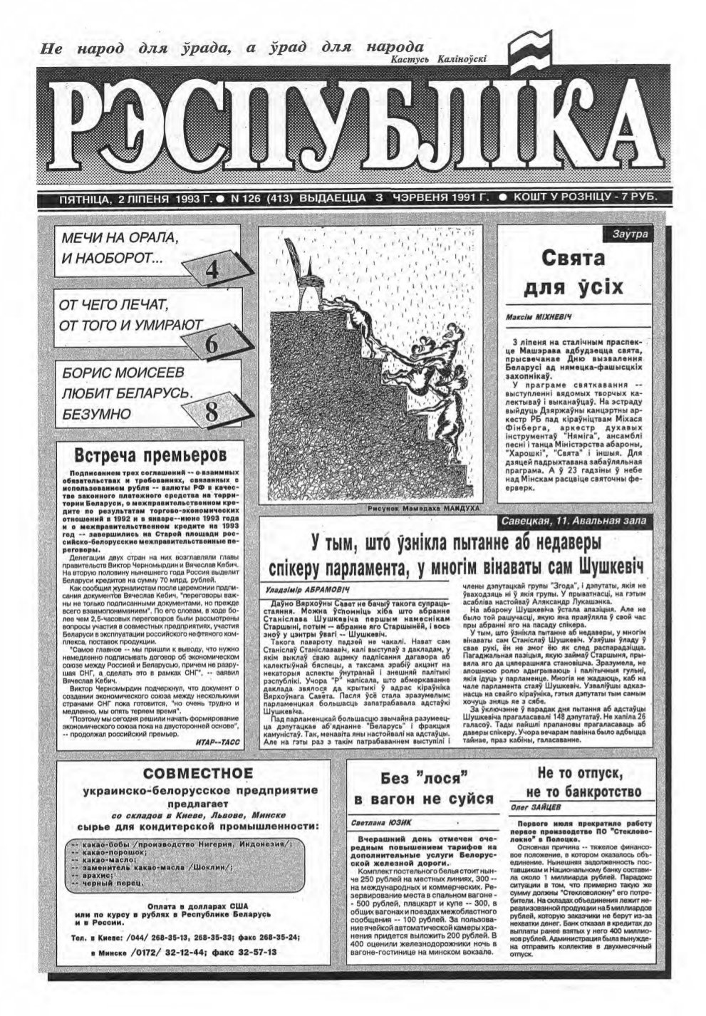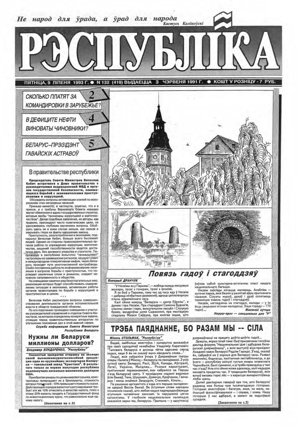 «Рэспубліка» — газета для тых, хто самастойна прымае рашэнні. Заснавальнік - Савет Міністраў Рэспублікі Беларусь. Выдаецца з чэрвеня 1991. Газета выходзіць 250 разоў у год. Аўтары апублікаваных матэрыялаў нясуць адказнасць за падбор і дакладнасць фактаў, іх меркаванні неабавязкова адлюстроўваюць пункт гледжання рэдакцыі. Рукапісы, фотаздымкі і малюнкі не рэцэнзуюцца I не вяртаюцца. Болей »