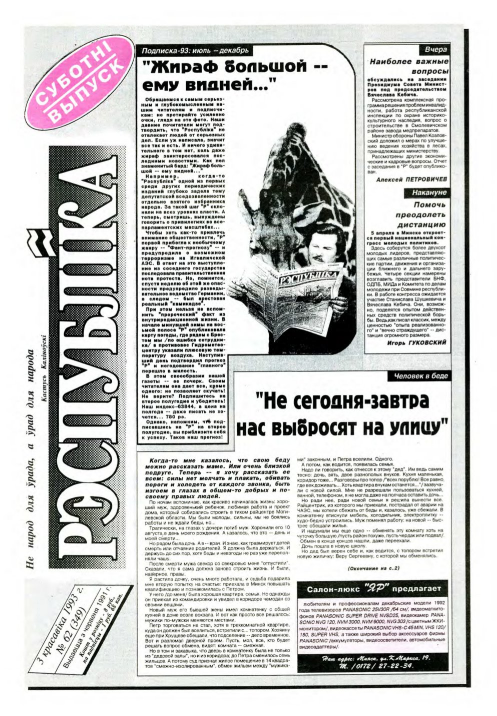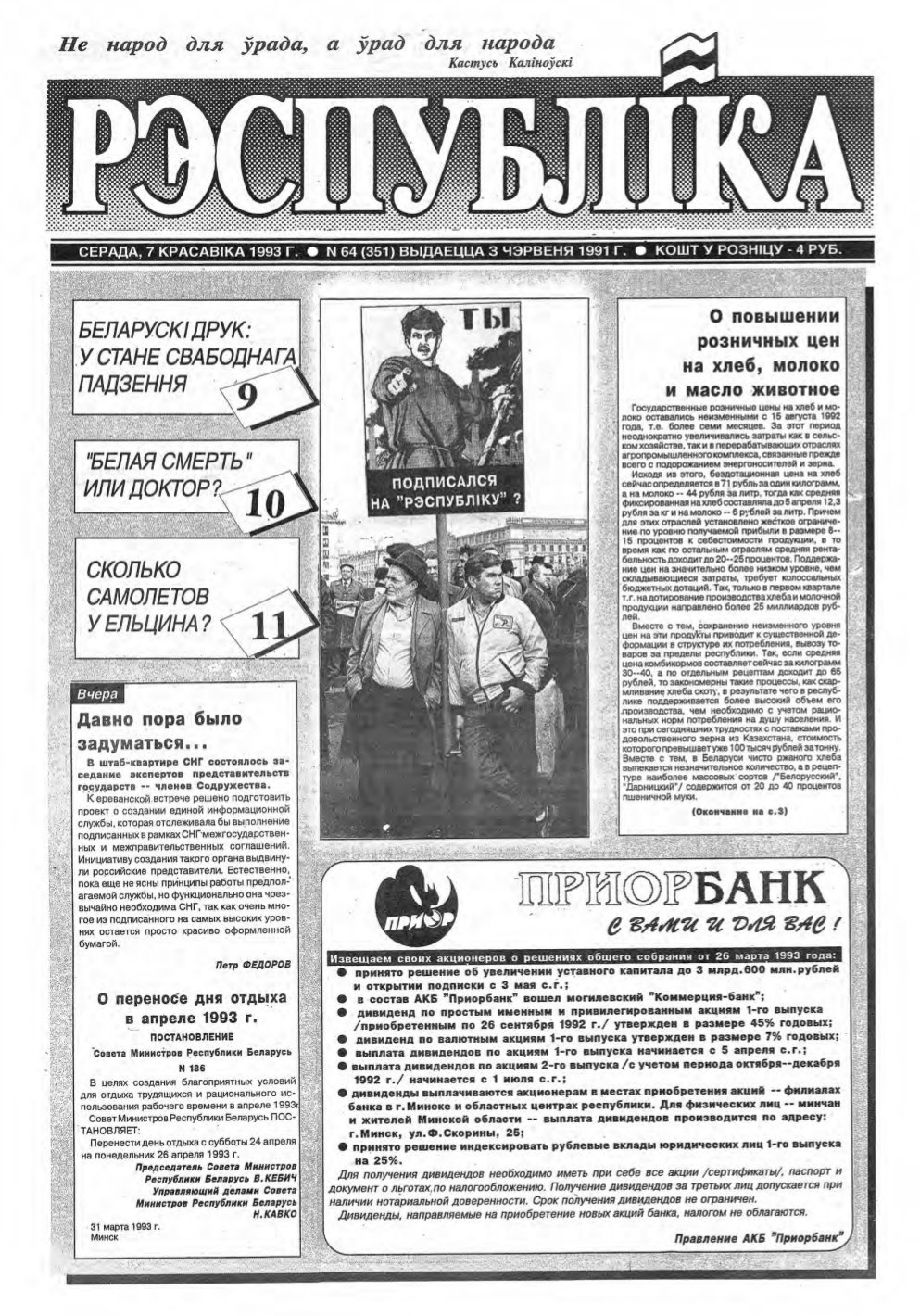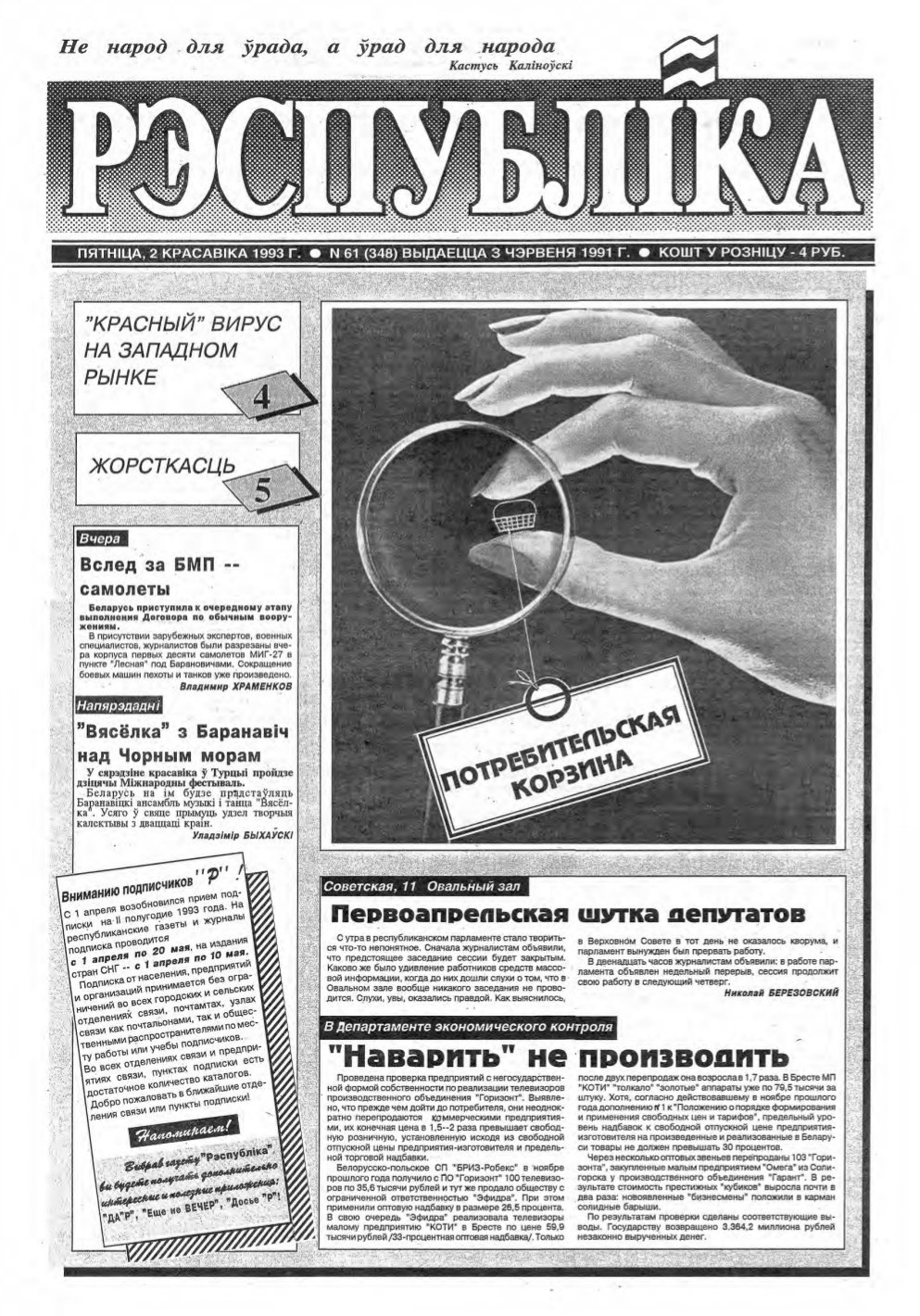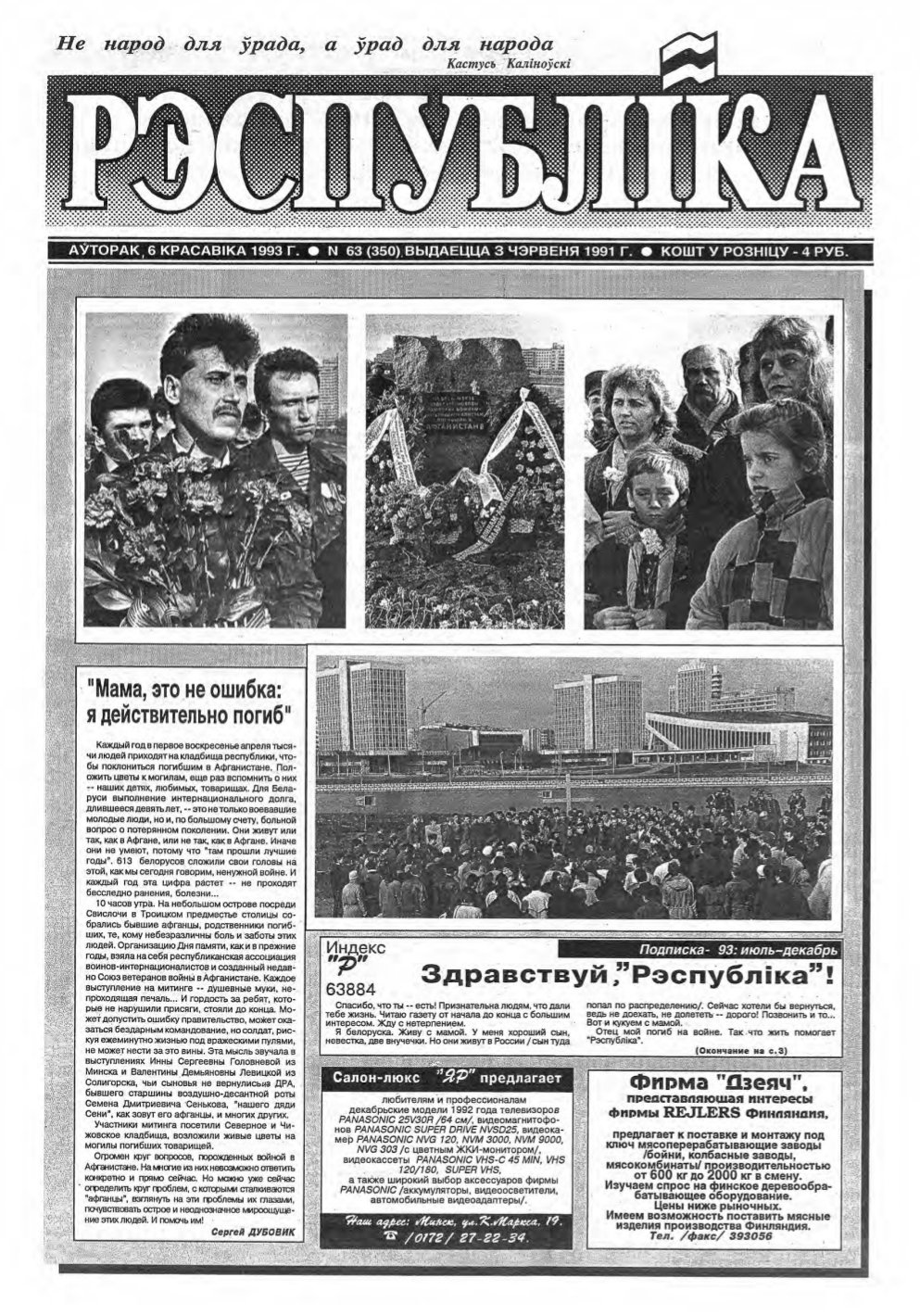 «Рэспубліка» — газета для тых, хто самастойна прымае рашэнні. Заснавальнік - Савет Міністраў Рэспублікі Беларусь. Выдаецца з чэрвеня 1991. Газета выходзіць 250 разоў у год. Аўтары апублікаваных матэрыялаў нясуць адказнасць за падбор і дакладнасць фактаў, іх меркаванні неабавязкова адлюстроўваюць пункт гледжання рэдакцыі. Рукапісы, фотаздымкі і малюнкі не рэцэнзуюцца I не вяртаюцца. Болей »