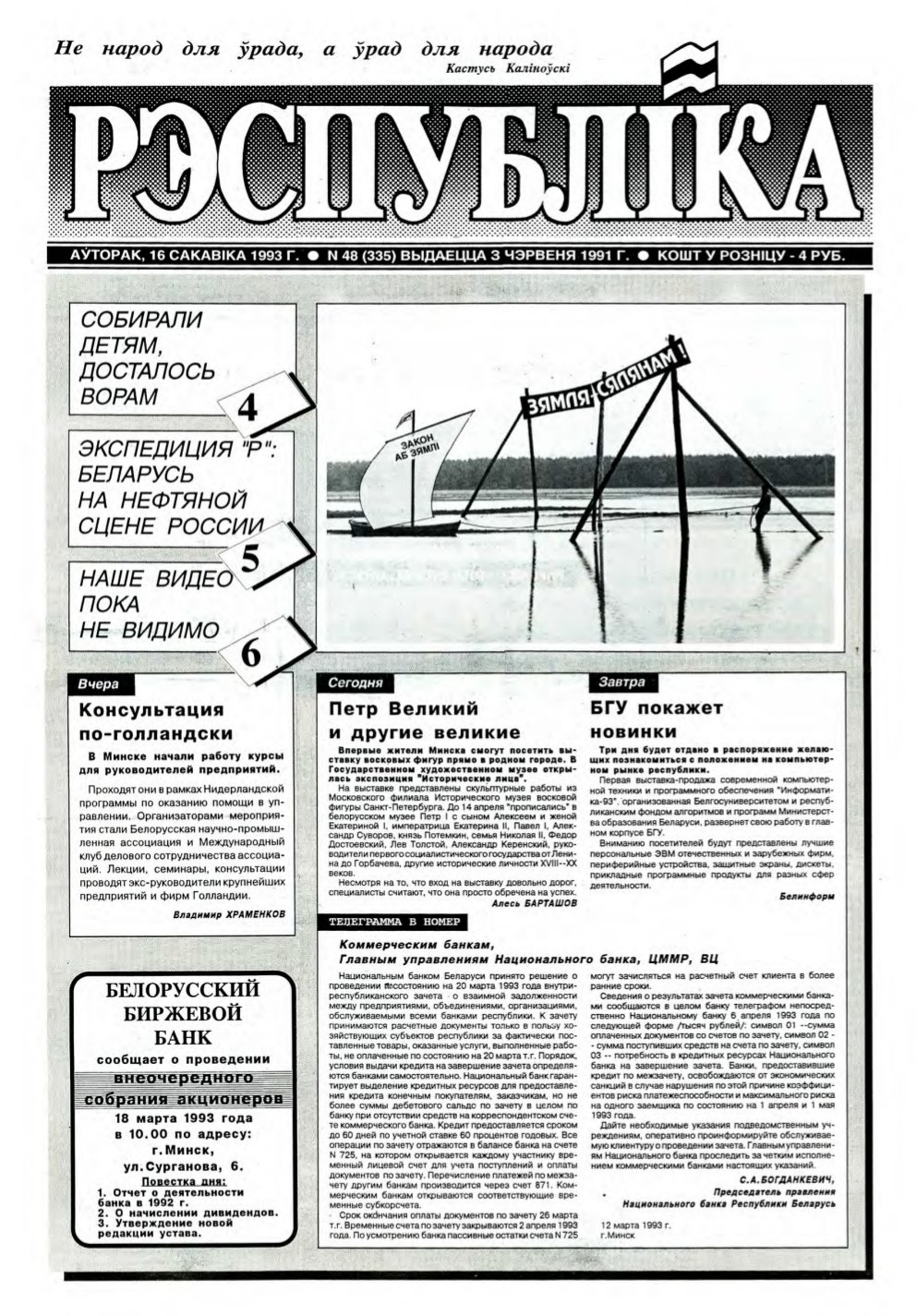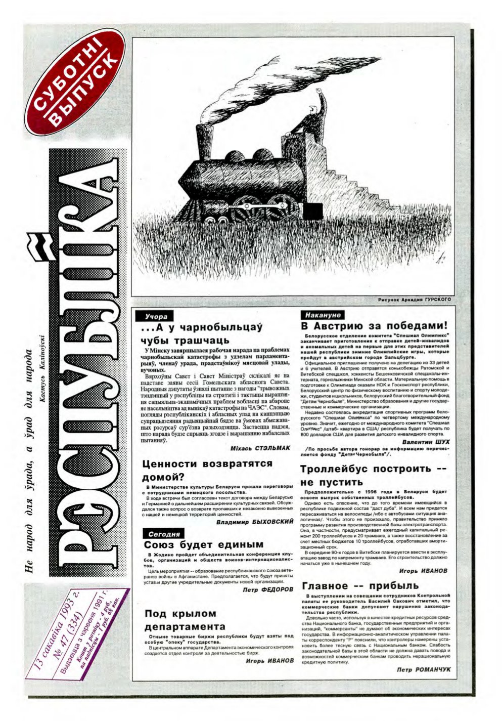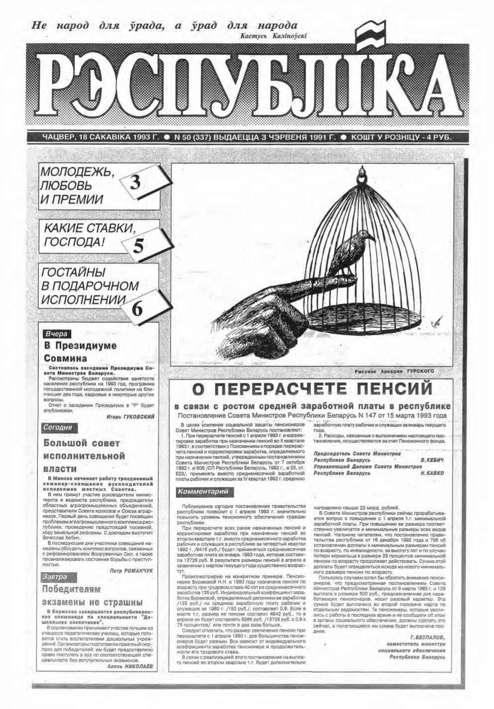 «Рэспубліка» — газета для тых, хто самастойна прымае рашэнні. Заснавальнік - Савет Міністраў Рэспублікі Беларусь. Выдаецца з чэрвеня 1991. Газета выходзіць 250 разоў у год. Аўтары апублікаваных матэрыялаў нясуць адказнасць за падбор і дакладнасць фактаў, іх меркаванні неабавязкова адлюстроўваюць пункт гледжання рэдакцыі. Рукапісы, фотаздымкі і малюнкі не рэцэнзуюцца I не вяртаюцца. Болей »