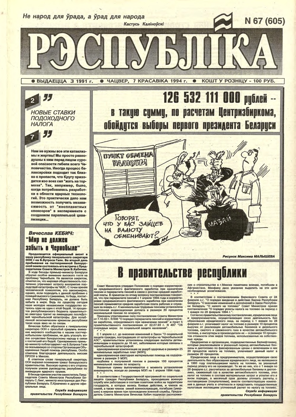 «Рэспубліка» — газета для тых, хто самастойна прымае рашэнні. Заснавальнік - Савет Міністраў Рэспублікі Беларусь. Выдаецца з чэрвеня 1991. Газета выходзіць 250 разоў у год. Аўтары апублікаваных матэрыялаў нясуць адказнасць за падбор і дакладнасць фактаў, іх меркаванні неабавязкова адлюстроўваюць пункт гледжання рэдакцыі. Рукапісы, фотаздымкі і малюнкі не рэцэнзуюцца I не вяртаюцца. Болей »