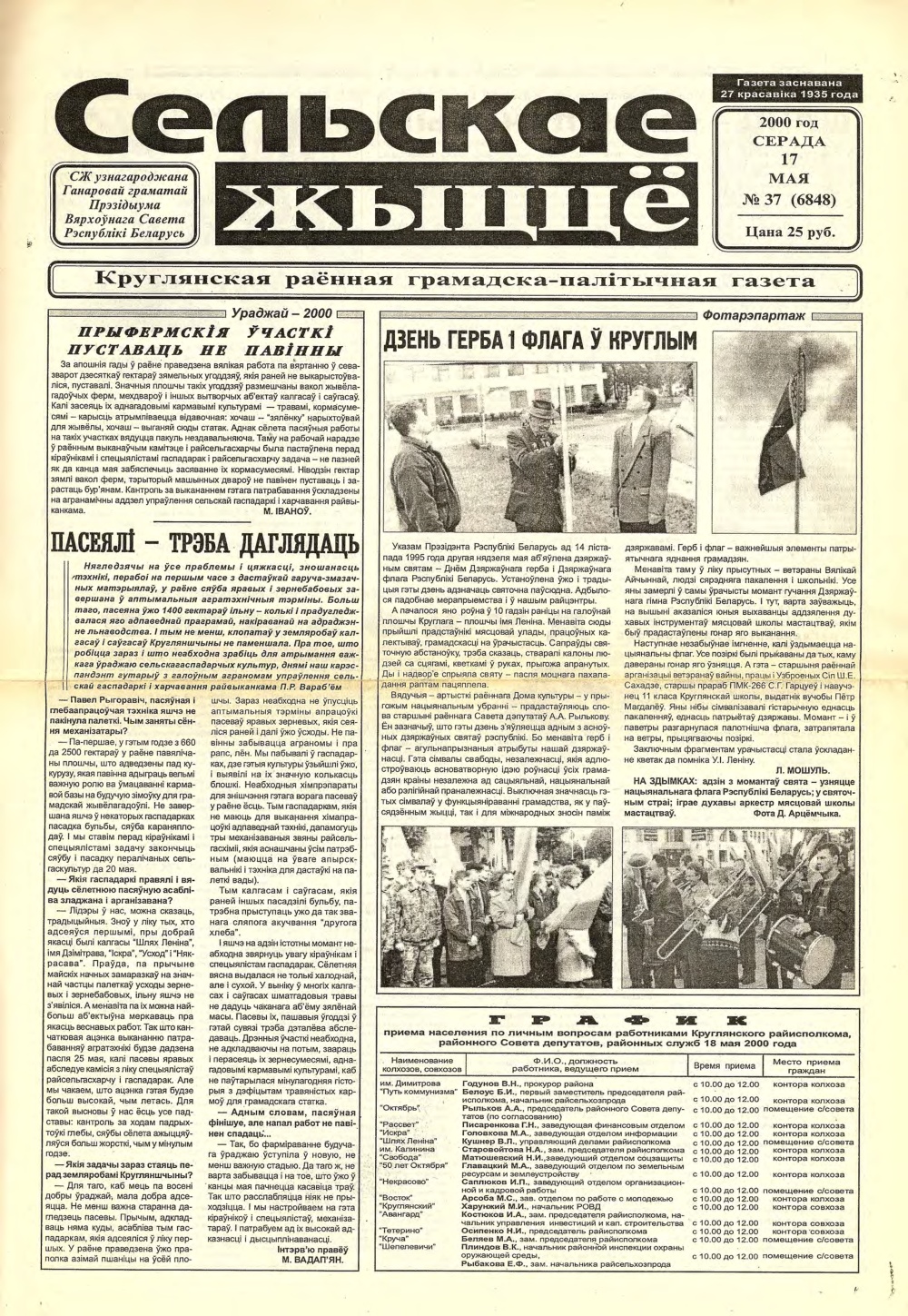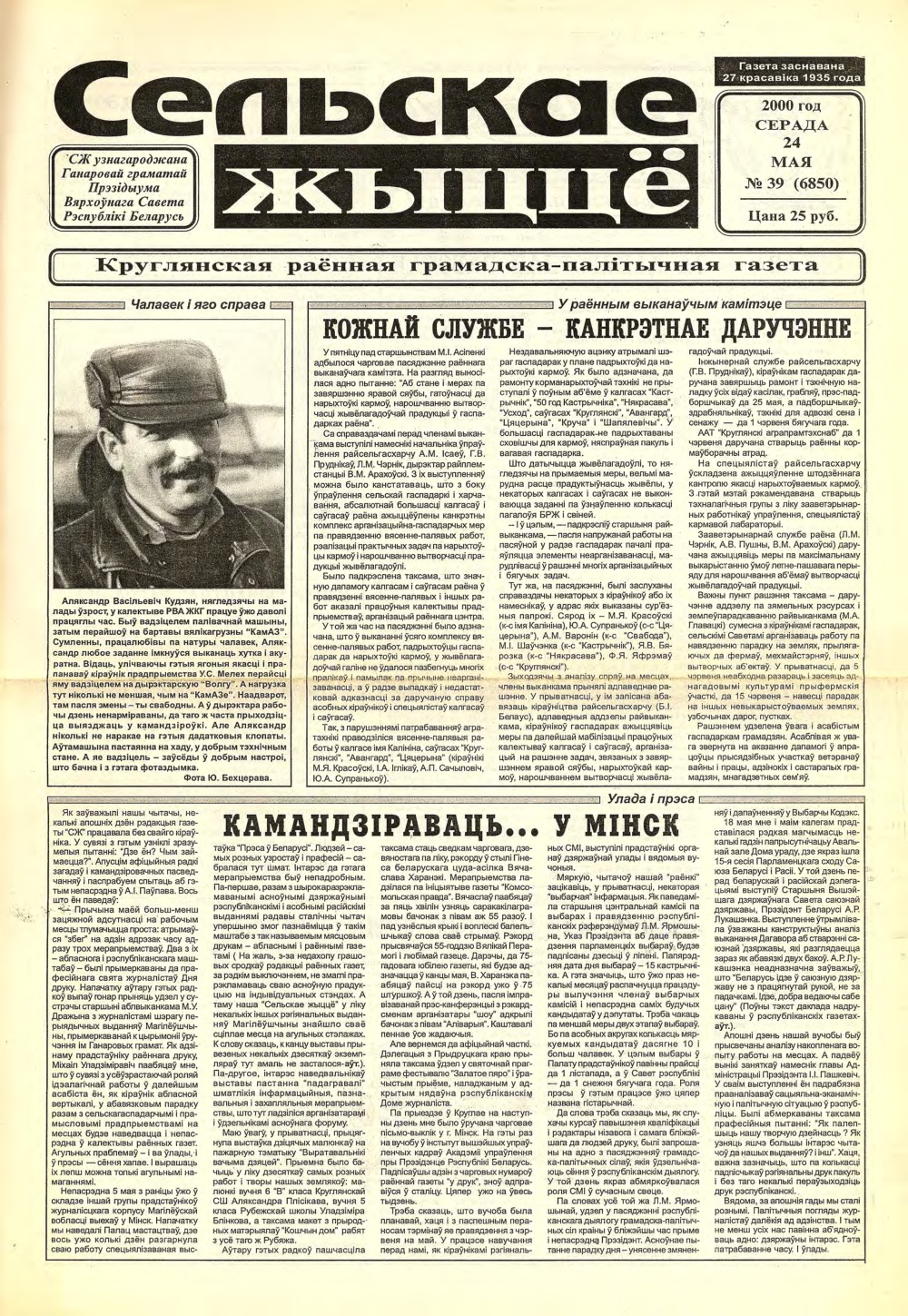 «Сельскае жыццё» — Круглянская раённая грамадска-палітычная газета. Першы нумар Круглянскай раённай газеты выйшаў 27 красавіка 1935 года пад назвай "Бальшавік Кругляншчыны". У гады Вялікай Айчыннай вайны газета выходзіла пад назвай "Партызанскі шлях". У кожным нумары яна даносіла да жыхароў раёна ўсю праўду пра падзеі на франтах, расказвала пра баявыя справы мясцовых партызан і падпольшчыкаў. У першыя пасляваенныя гады раённая газета на... Болей »