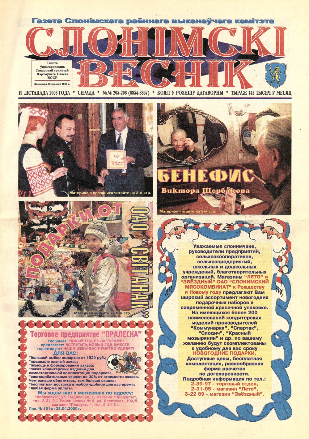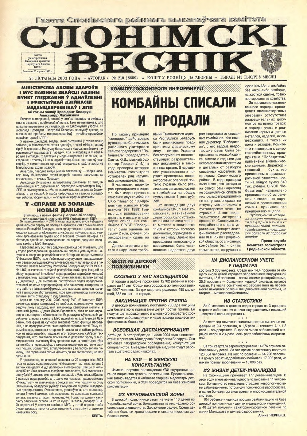 «Слонімскі веснік» — Грамадска-палітычная газета. Заснавана 26 верасня 1929 года. Заснавальнік: Слонімскі раённы Выканаўчы камітэт. Газета выходзіць 174 нумары ў год на беларускай і рускай мовах, аб’ём — два друкаваньш аркушы. Рэдакцыя можа друкаваць матэрыялы ў парадку абмеркавання, не падзяляючы пункту погляду аўтара. Пры перадрукоўцы матэрыялаў спасылка на СВ абавязковая. Болей »