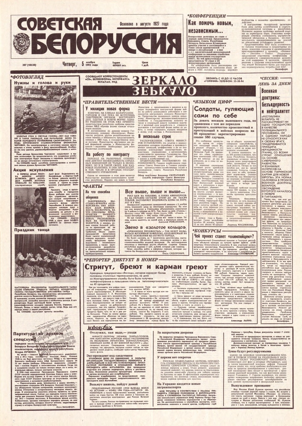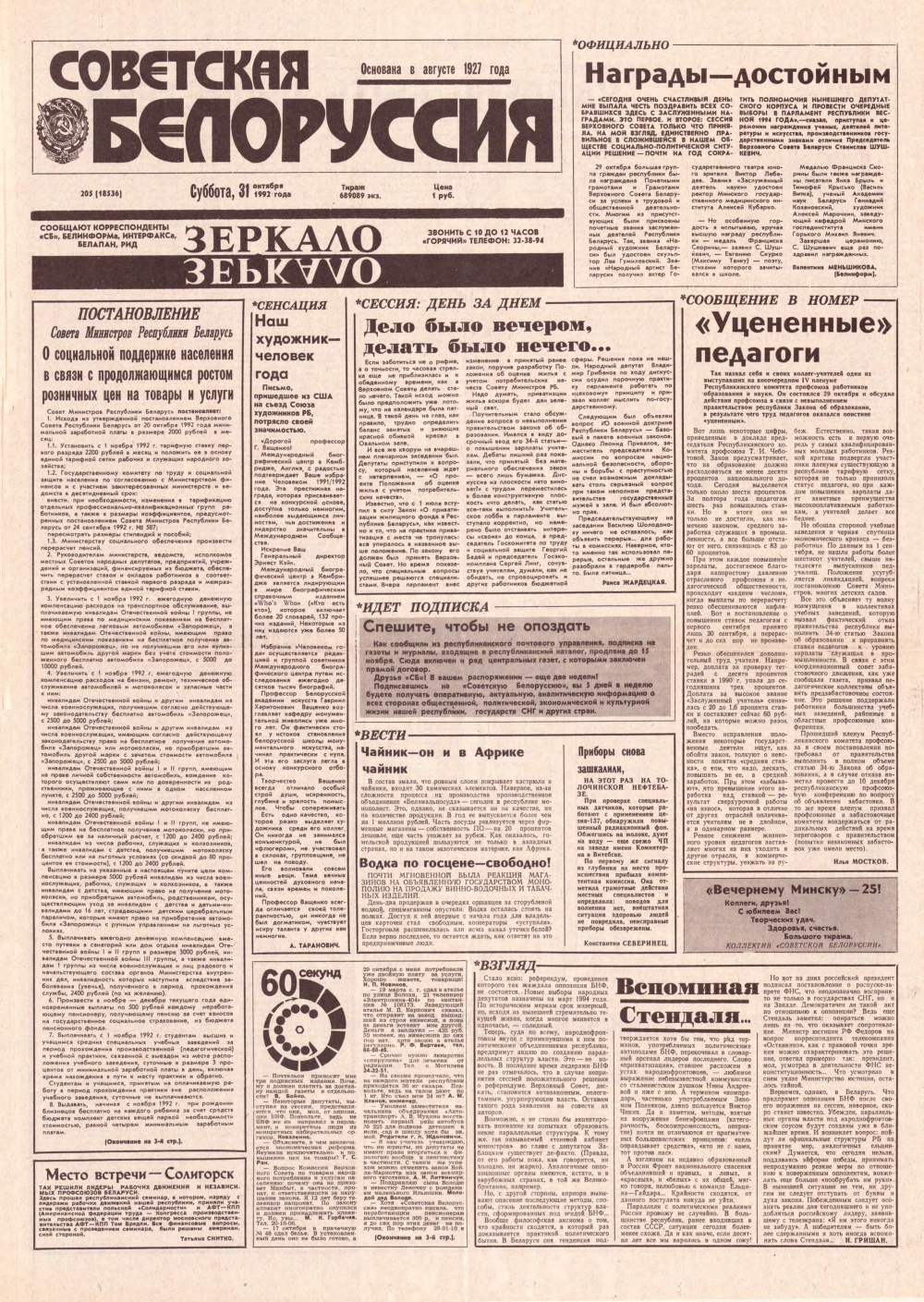 Советская Белоруссия, 207 (18538) 1992