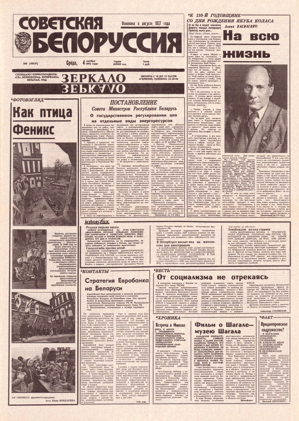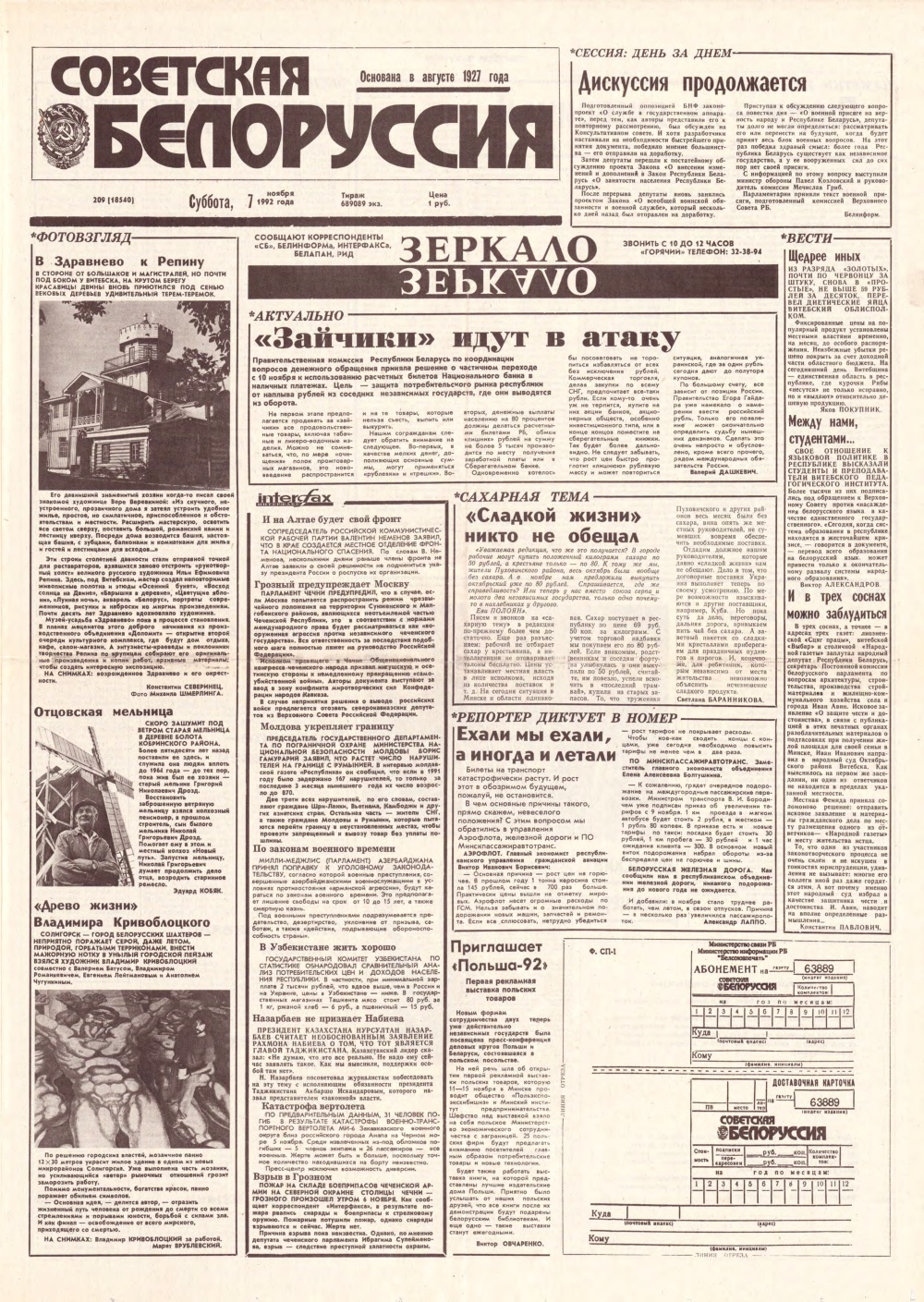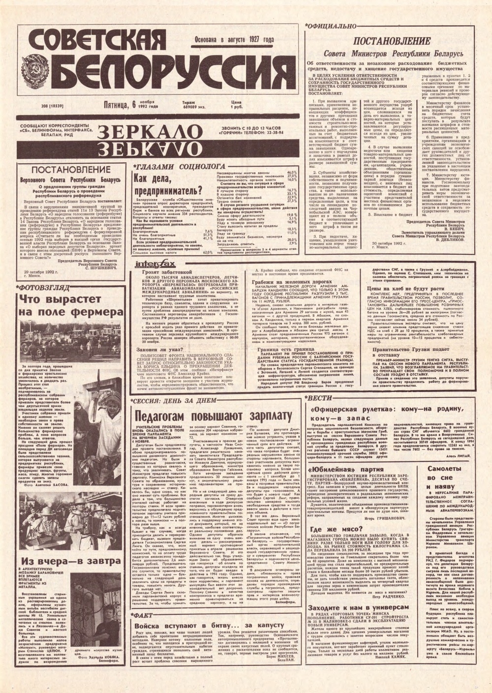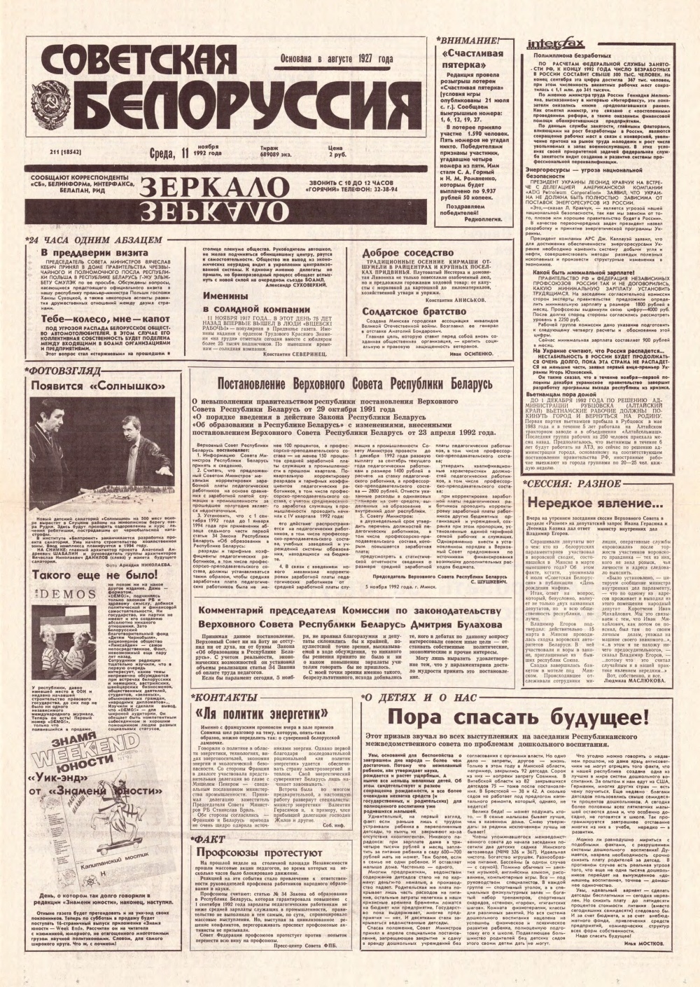 Советская Белоруссия, 211 (18542) 1992