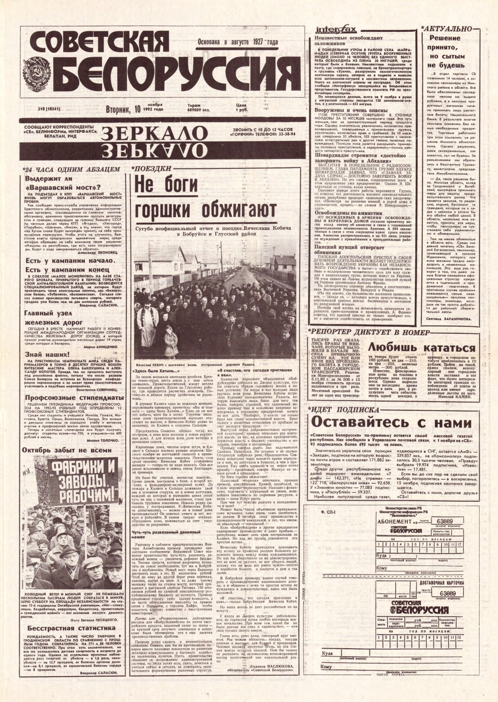 Советская Белоруссия, 210 (18541) 1992