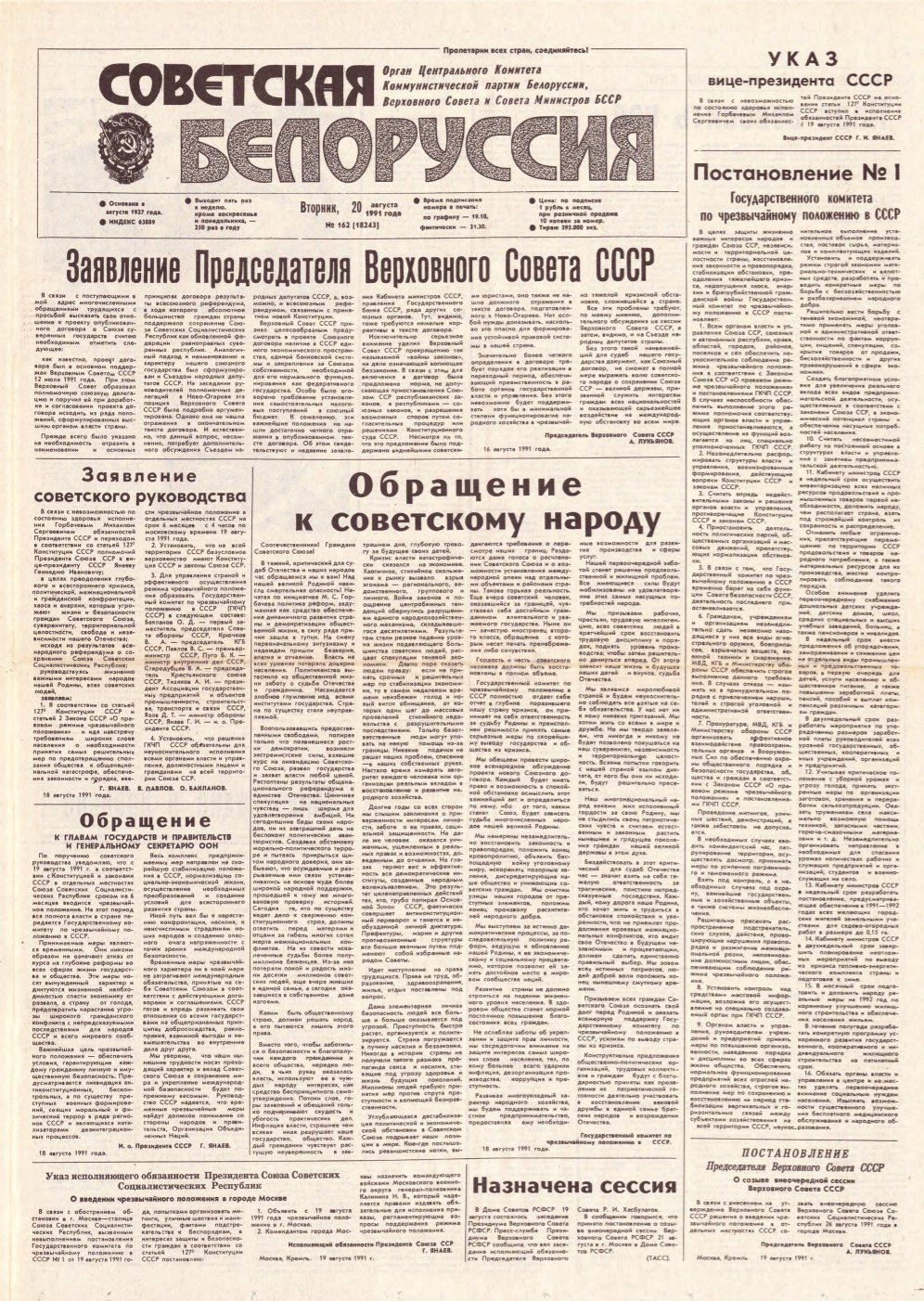 Советская Белоруссия, 162 (18243) 1991