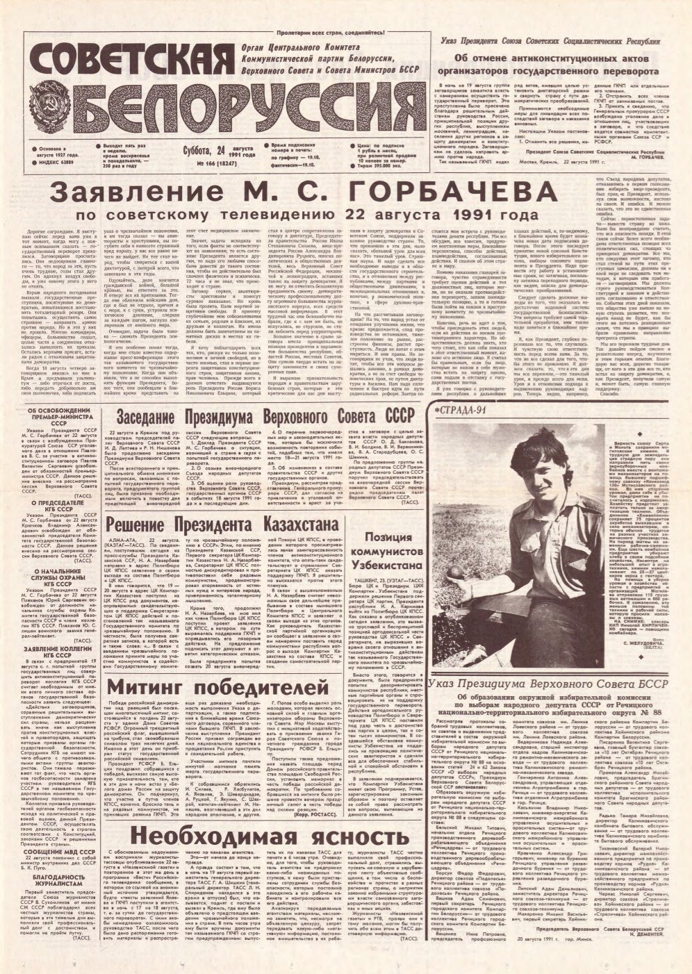 Советская Белоруссия, 166 (18247) 1991