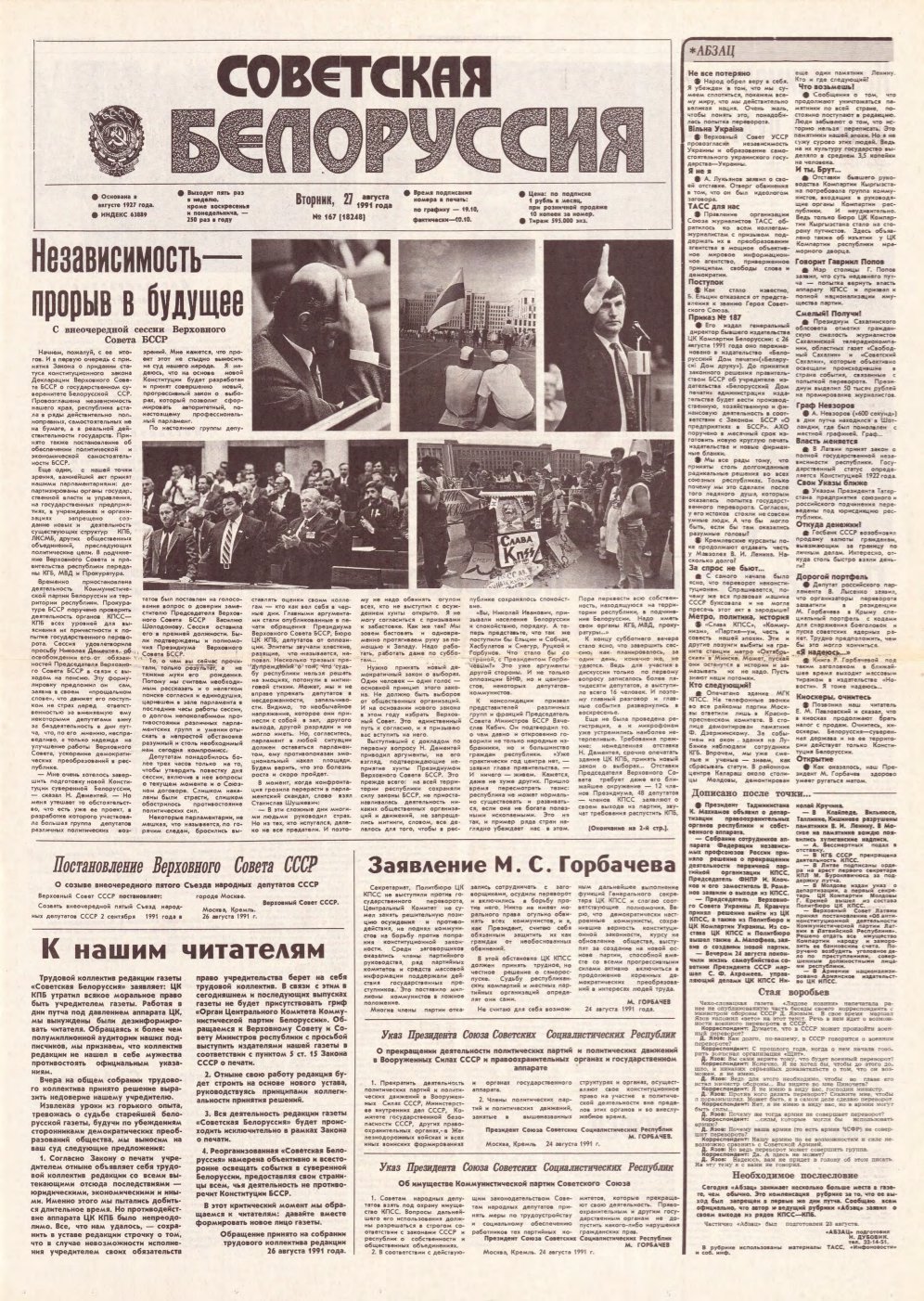 Советская Белоруссия, 167 (18248) 1991