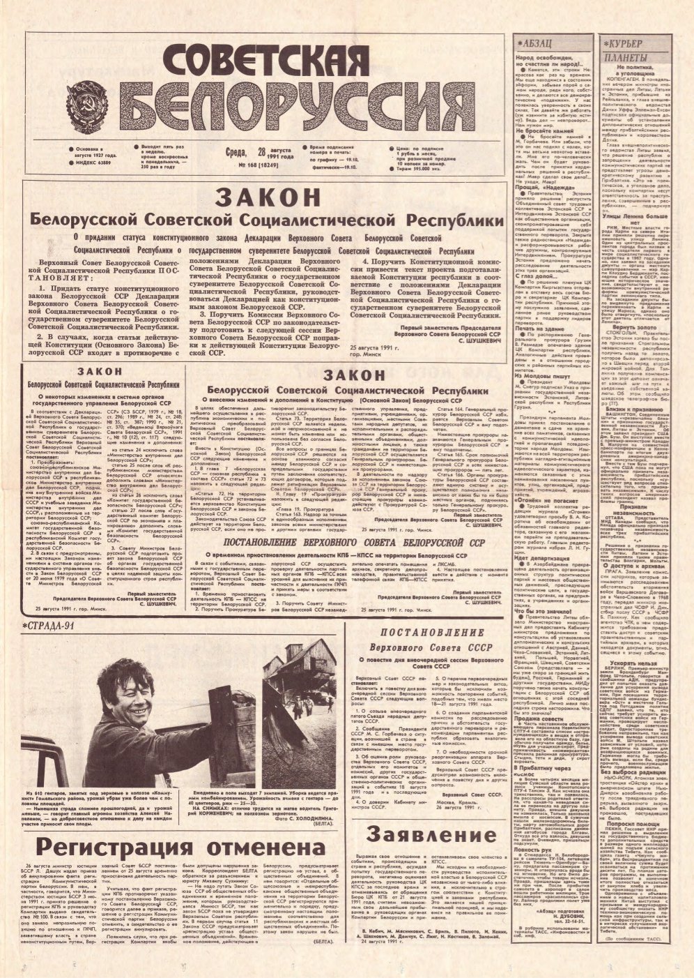 Советская Белоруссия, 168 (18249) 1991
