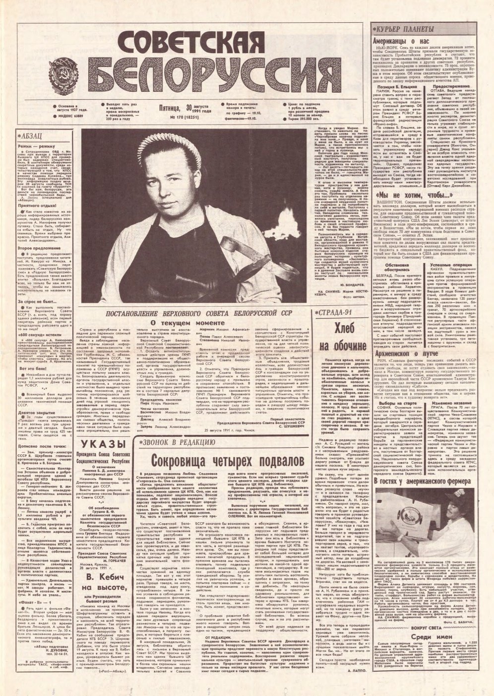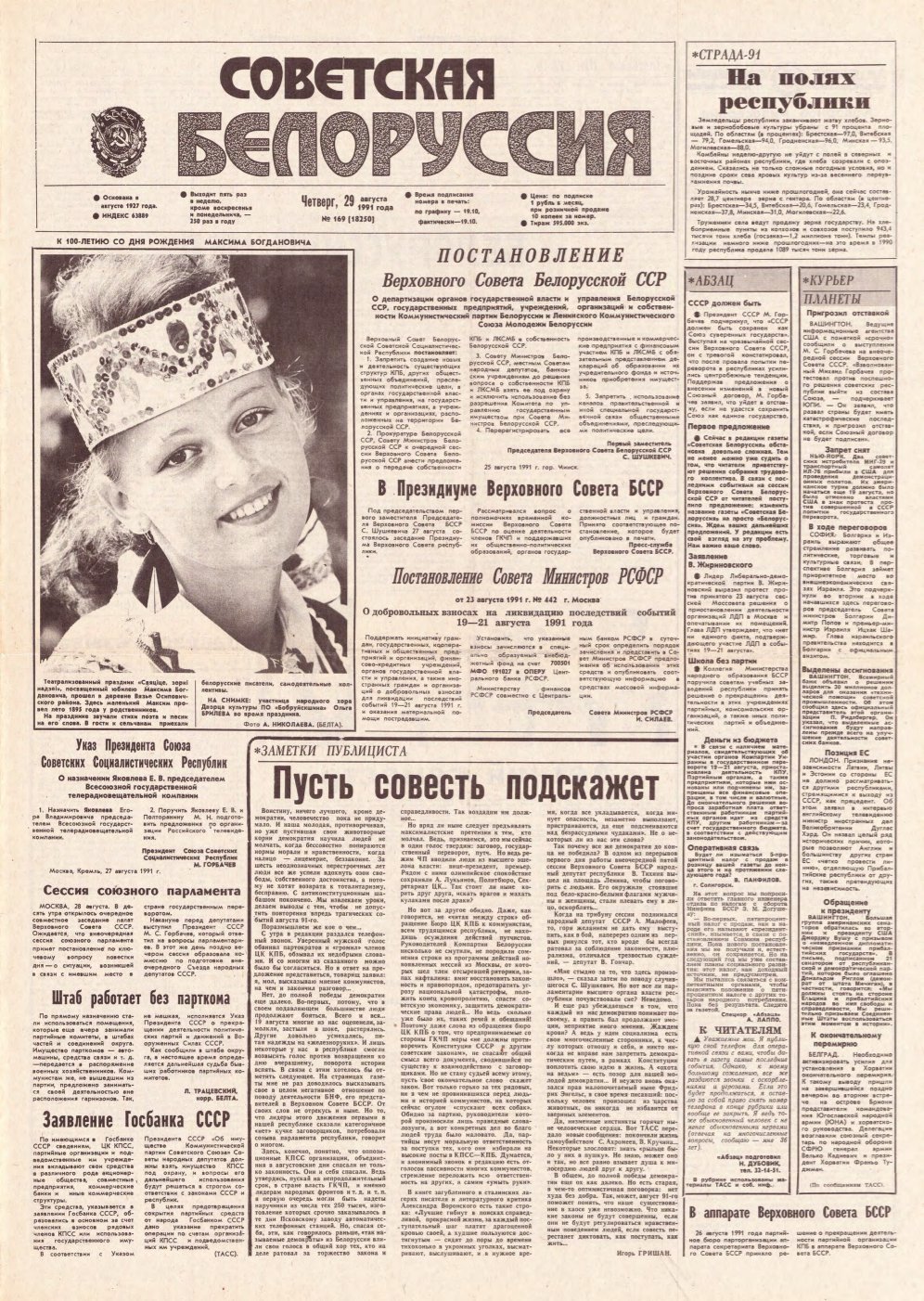 Советская Белоруссия, 169 (18250) 1991