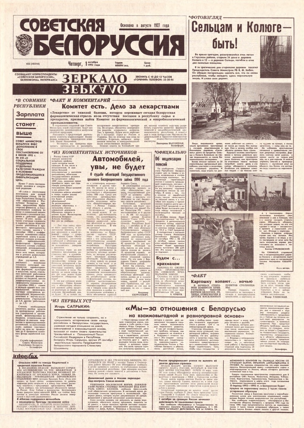 Советская Белоруссия, 183 (18514) 1992