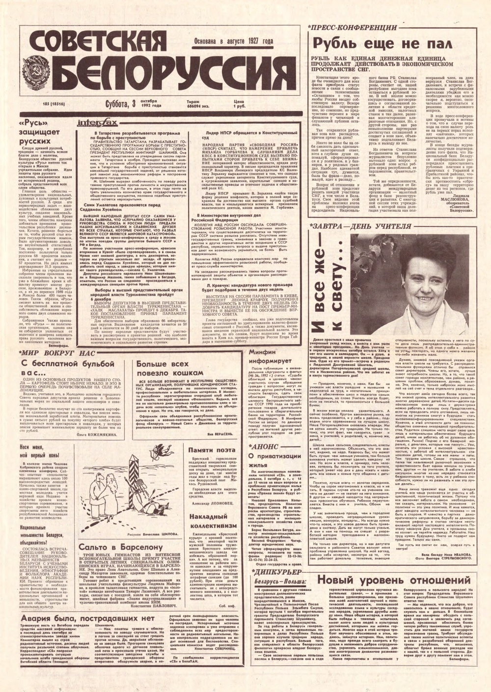 Советская Белоруссия, 184 (18515) 1992