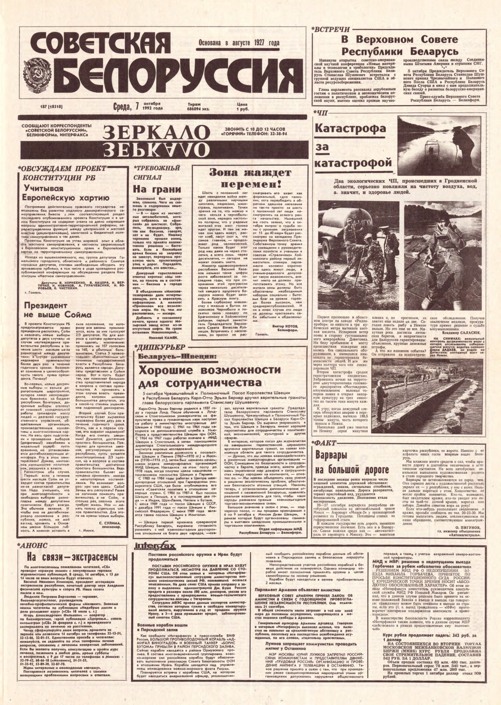 Советская Белоруссия, 186 (18517) 1992