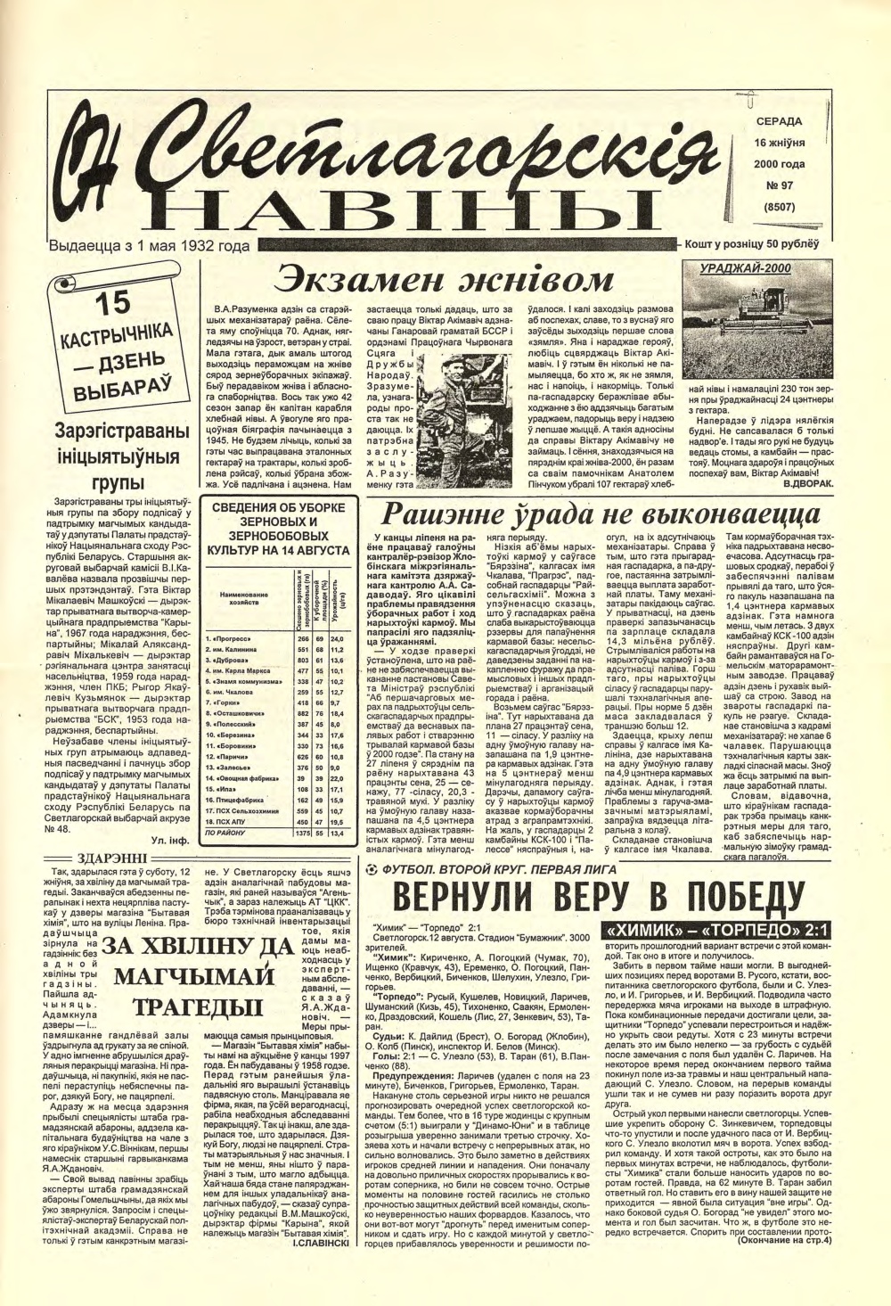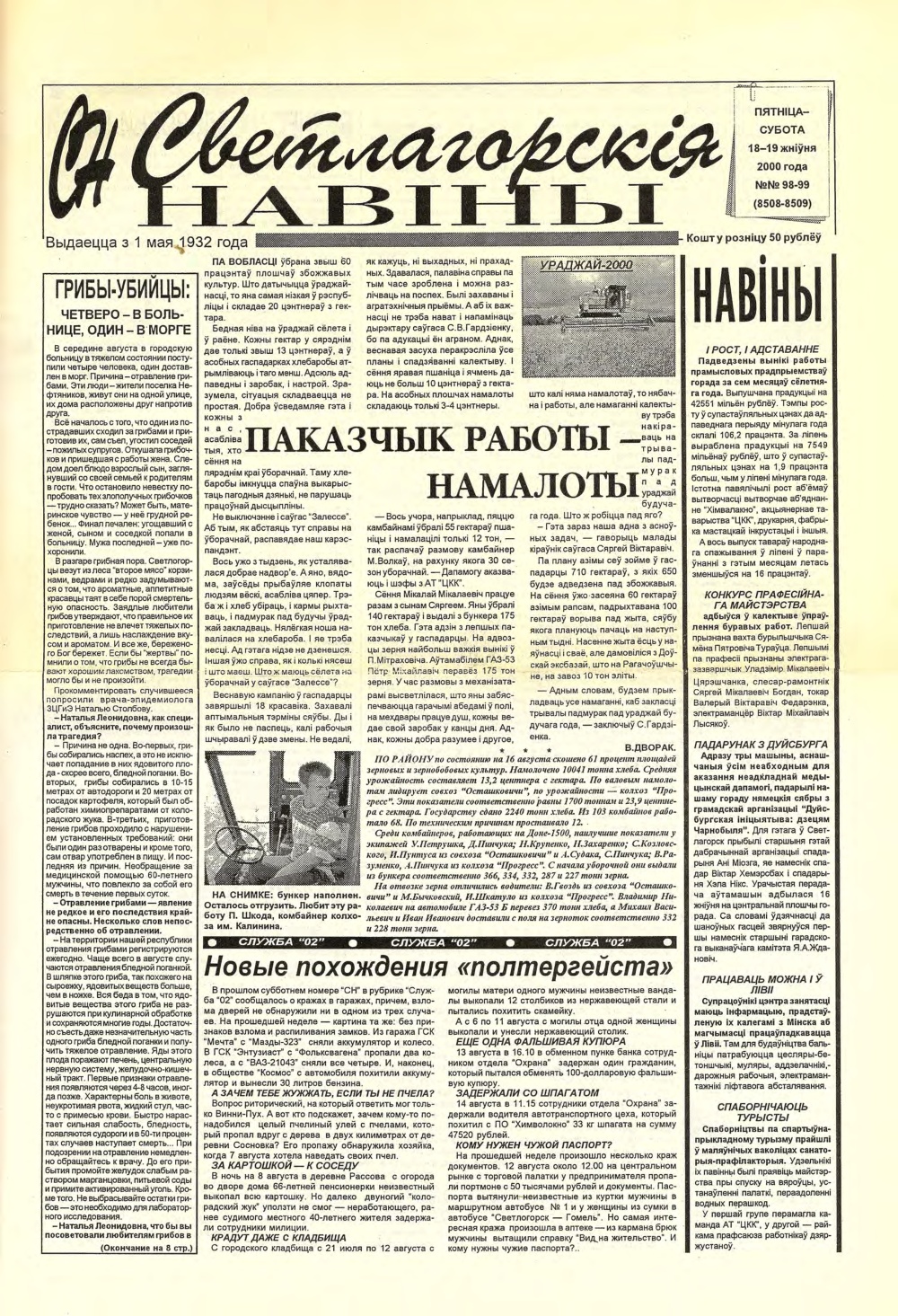 «Ленінская перамога», «Агнi камунiзму», «Светлагорскiя навiны» — тры назвы, але адна газета. З першага нумара, які выйшаў 1 мая 1932 года, і па сённяшні дзень газета актуальная, аператыўная, дакладная і цікавая. «Светлагорскiя навiны» — гэта, па сутнасцi, энцыклапедыя роднага краю. Па яе старонках можна ўзнавіць гісторыю будаўніцтва горада, вялікіх і малых прадпрыемстваў, сацыяльнай інфраструктуры Светлагоршчыны. Газета не страціла сва... Болей »