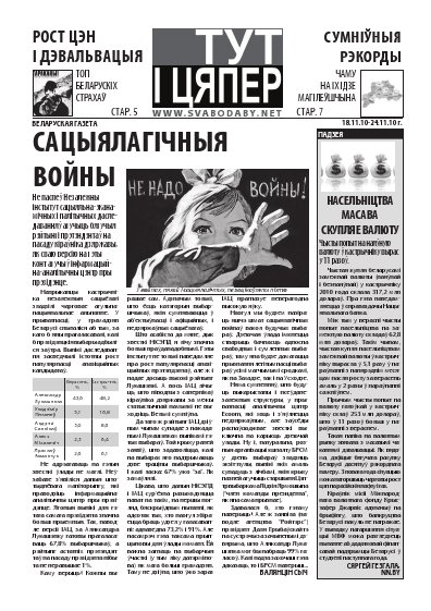 Не паспеў Незалежны інстытут сацыяльна-эканамічных і палітычных даследаванняў агучыць бягучыя рэйтынгі прэтэндэнтаў на пасаду кіраўніка дзяржавы, як сваю версію на гэты конт агучыў інфармацыйна-аналітычны цэнтр пры прэзідэнце. Напрыканцы кастрычніка незалежныя сацыёлагі зладзілі чарговае агульнанацыянальнае апытанне. У прыватнасці, у грамадзян Беларусі спыталіся аб тым, за каго б яны прагаласавалі, калі б прэзідэнцкія выбары адбыліся з... Болей »