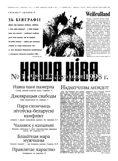Газэта «Наша Ніва» была ўтвораная ў 1906 годзе, і спачатку фактычна была органам Беларускае Сацыялістычнае грамады. У 1991 годзе «Наша Ніва» была адроджаная ў Вільні, галоўным рэдактарам стаў Сяргей Дубавец. Адроджаная газэта зноў стала галоўным выданьнем нацыянальнай інтэлігенцыі, побач з навінамі публікуючы літаратурныя творы, эсэ. У 1996 годзе было прынятае рашэньне пра перанясеньне рэдакцыі ў Менск і трансфармацыі «Нашай Нівы» з выданьня літаратурна-інтэлектуальнага ў выданьне грамадзка-палітычнага характару. Ад 1999 году газэта вяртаецца да штотыднёвае пэрыядычнасьці. Ад 2000 году рэдактарства ў «Нашай Ніве» пераймае Андрэй Дынько. Ад 2002 году аб’ём газэты павялічваецца з 12 да 16 старонак, ад 2005 году — да 24-х. Паралельна з папяровым выданьнем з 1997 году існуе інтэрнэт-сайт газэты. (www.be-x-old.wikipedia.org)