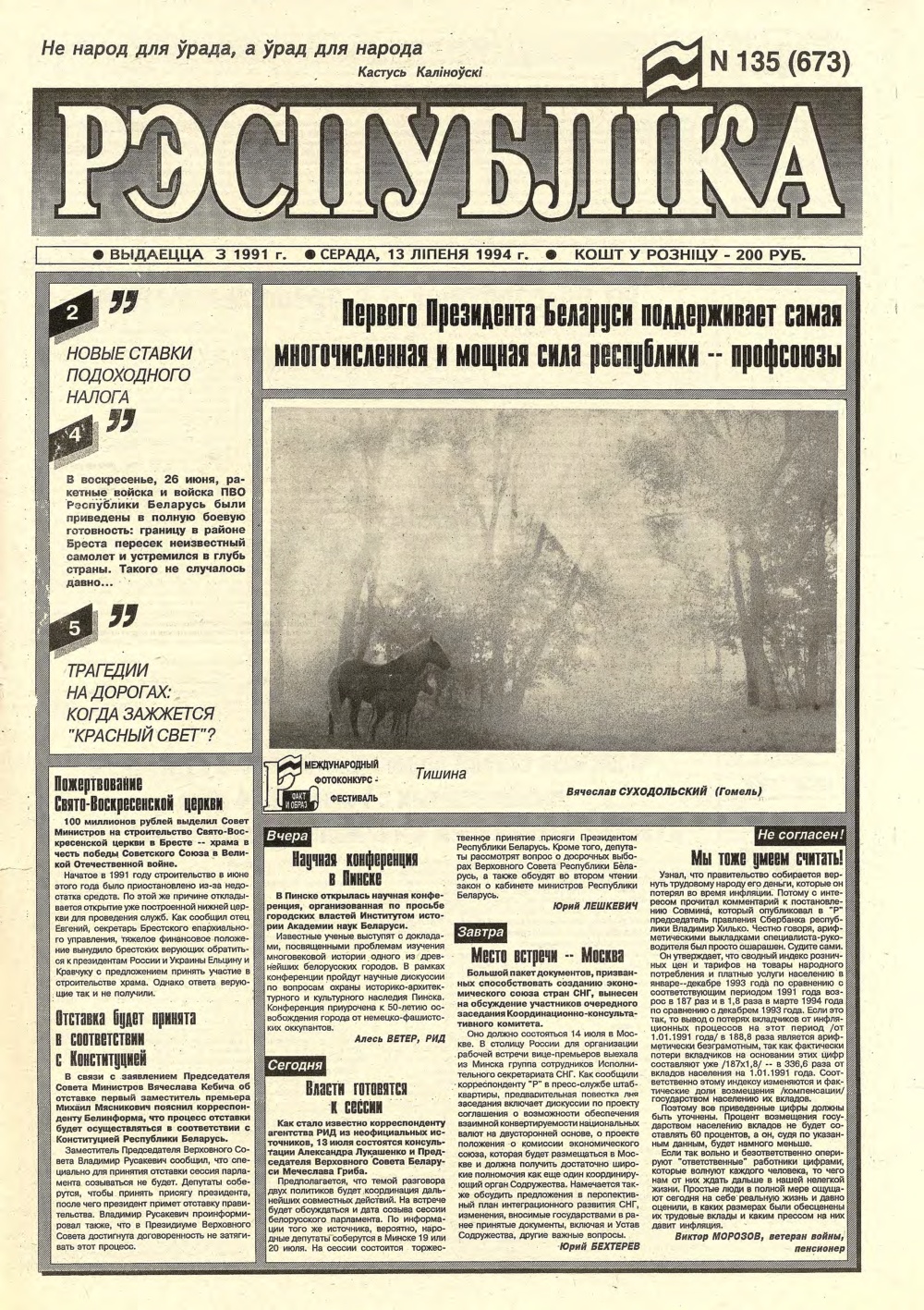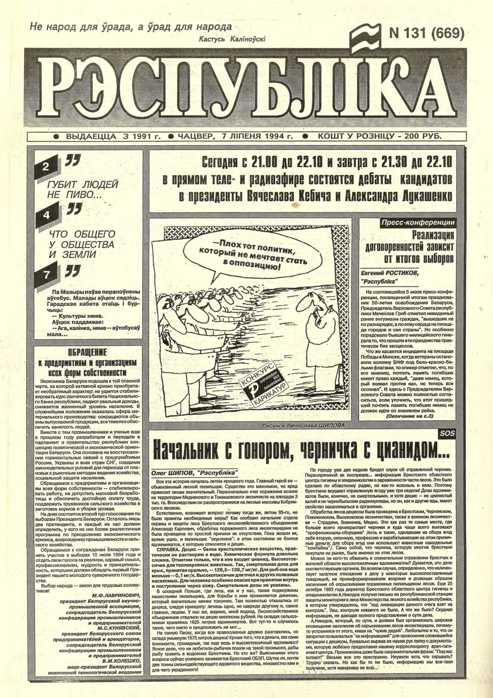 «Рэспубліка» — газета для тых, хто самастойна прымае рашэнні. Заснавальнік - Савет Міністраў Рэспублікі Беларусь. Выдаецца з чэрвеня 1991. Газета выходзіць 250 разоў у год. Аўтары апублікаваных матэрыялаў нясуць адказнасць за падбор і дакладнасць фактаў, іх меркаванні неабавязкова адлюстроўваюць пункт гледжання рэдакцыі. Рукапісы, фотаздымкі і малюнкі не рэцэнзуюцца I не вяртаюцца. Болей »
