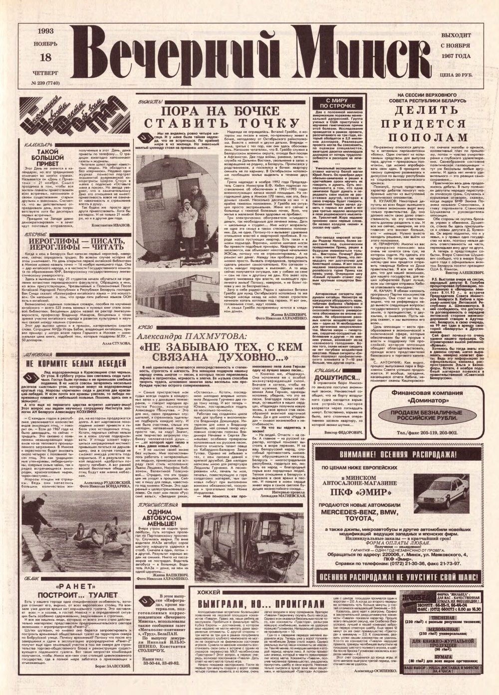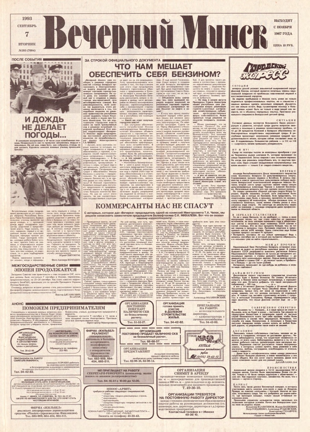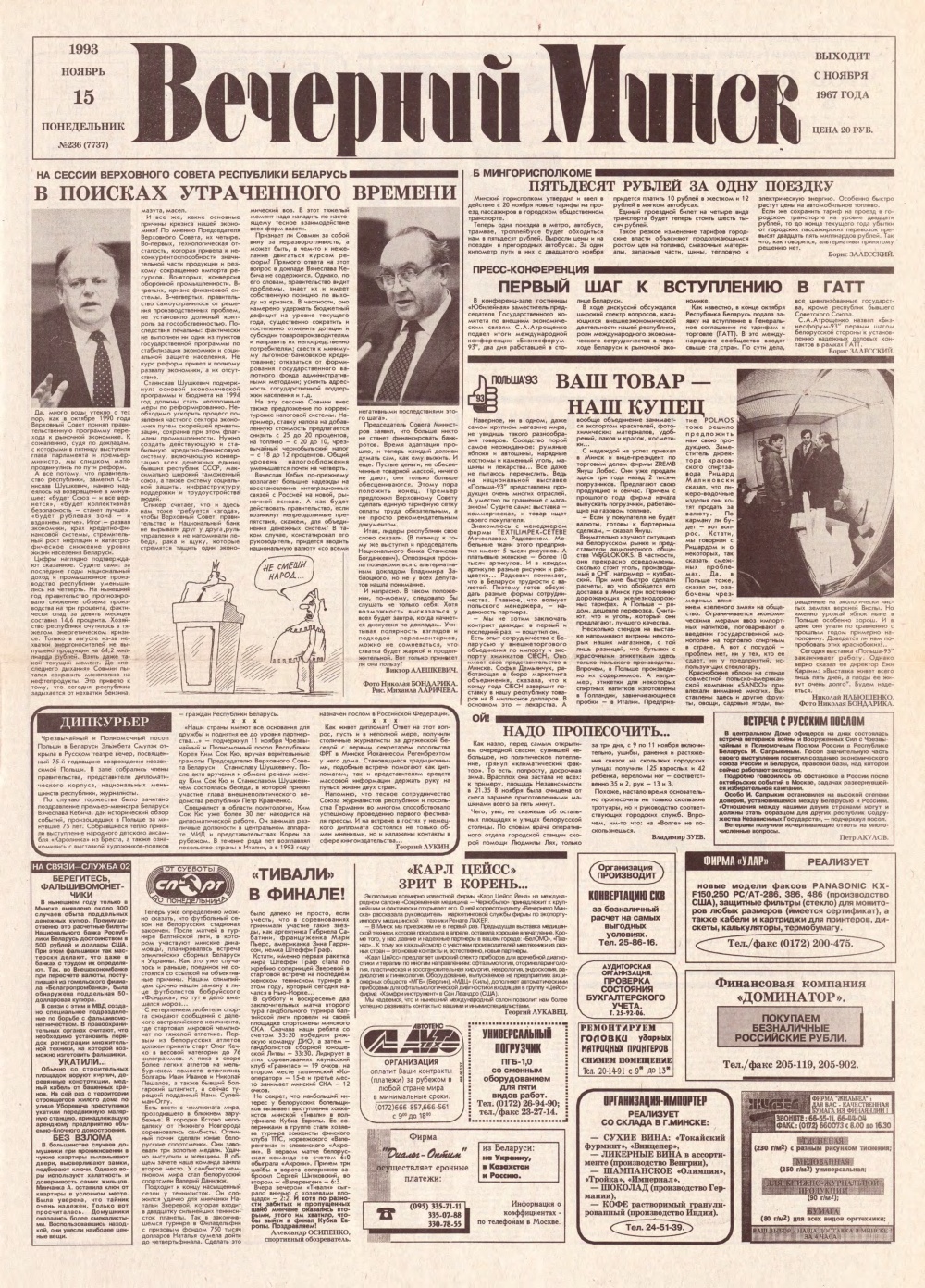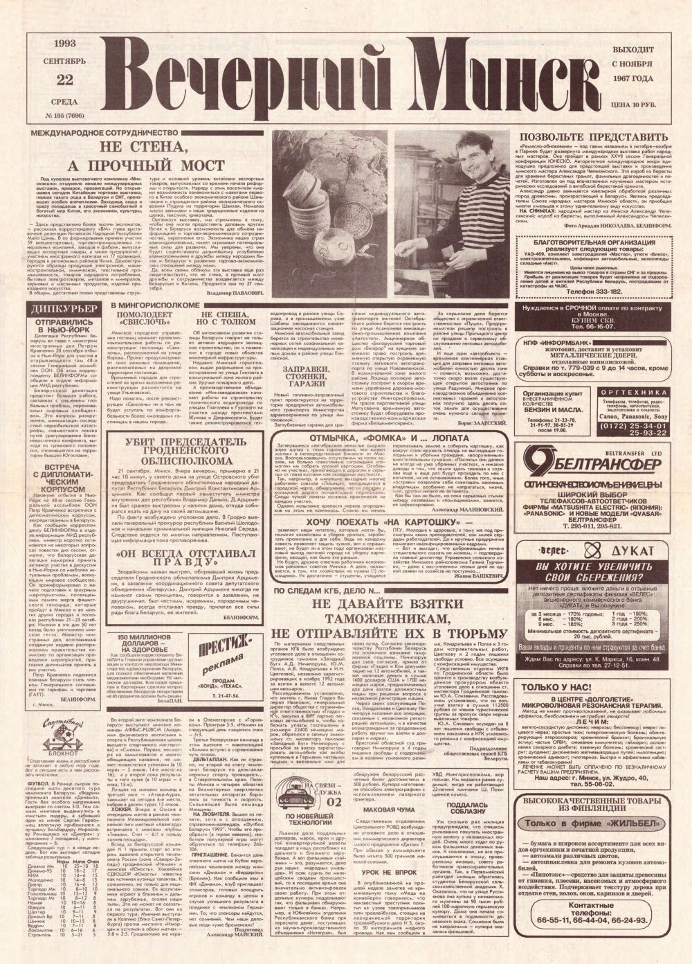 «Вечерний Минск» — выходит з ноября 1967 года. Учредитель: трудовой коллектив редакции газеты «Вечерний Минск». Газета издается на русском и белорусском языках, выходит 5 раз в неделю, кроме субботы и воскресенья — 250 раз в году. Болей »