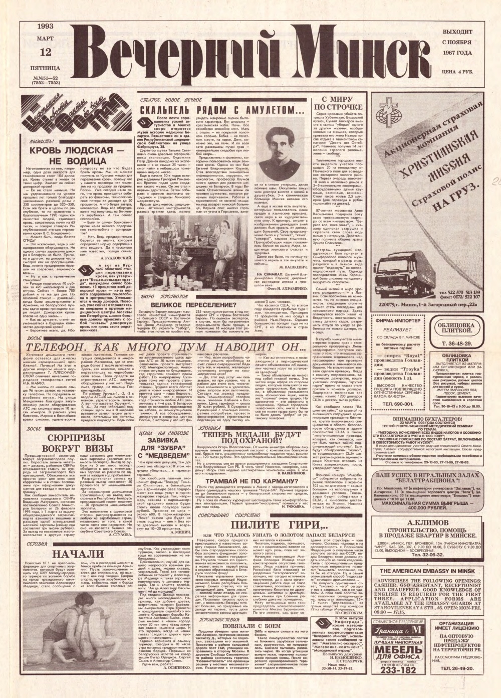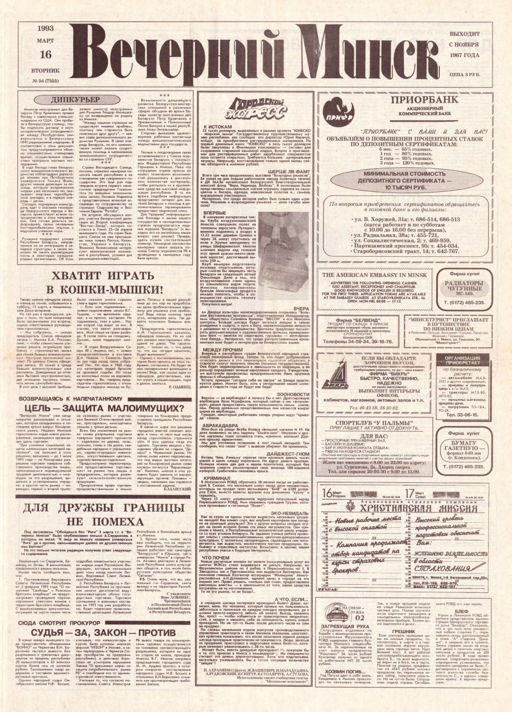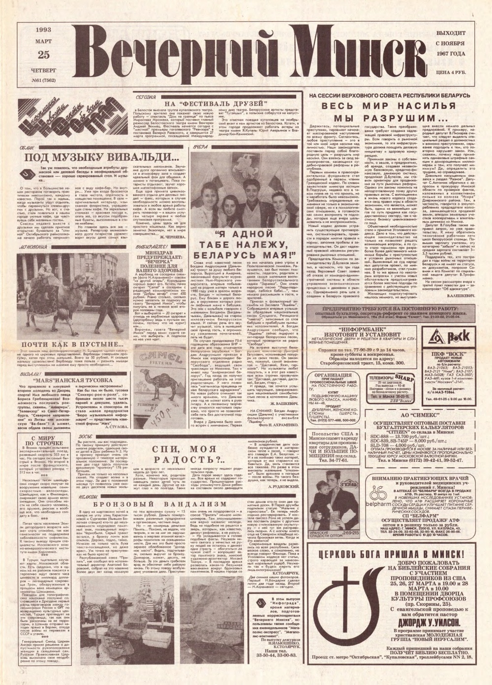 Вечерний Минск, 61 (7562) 1993